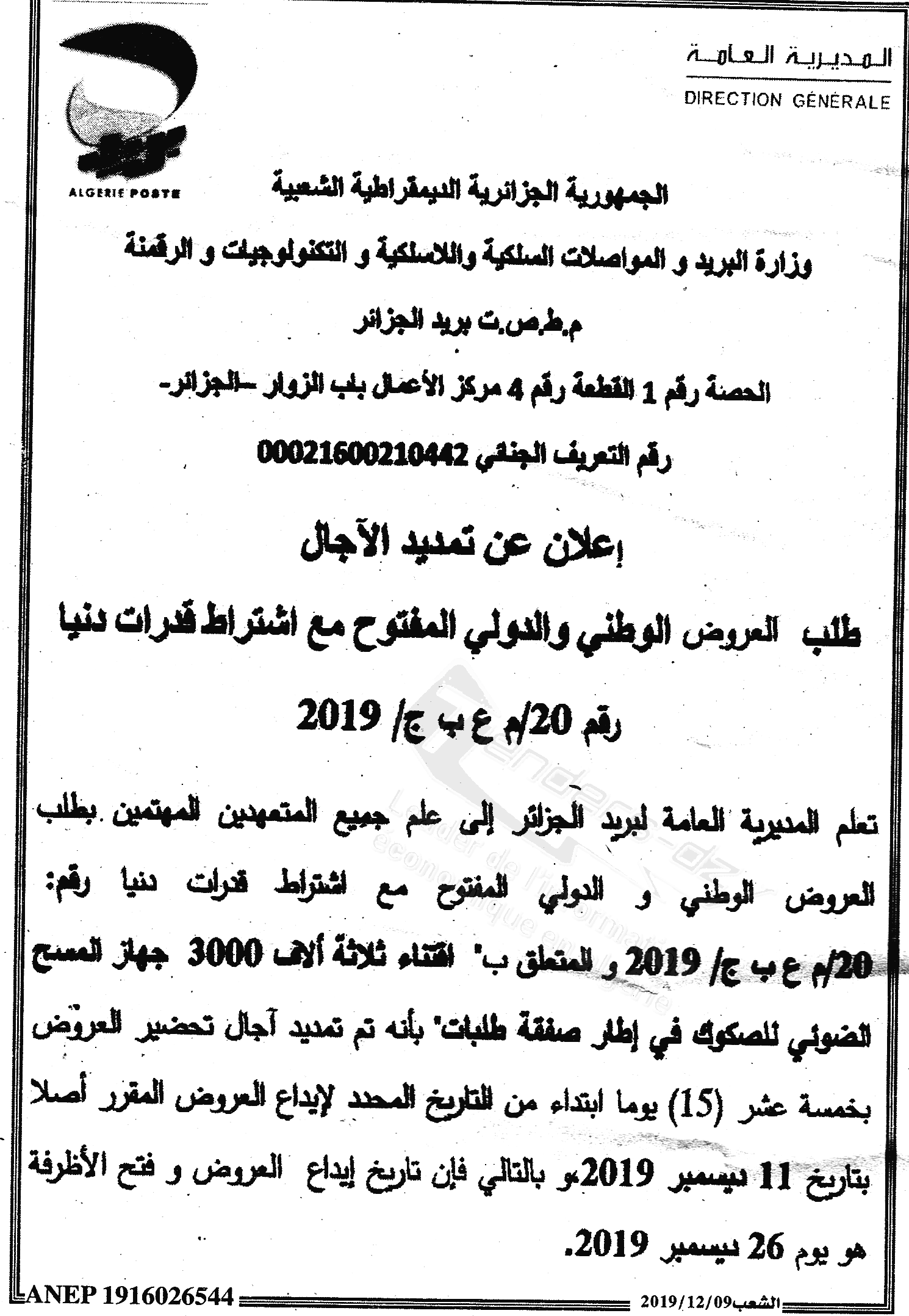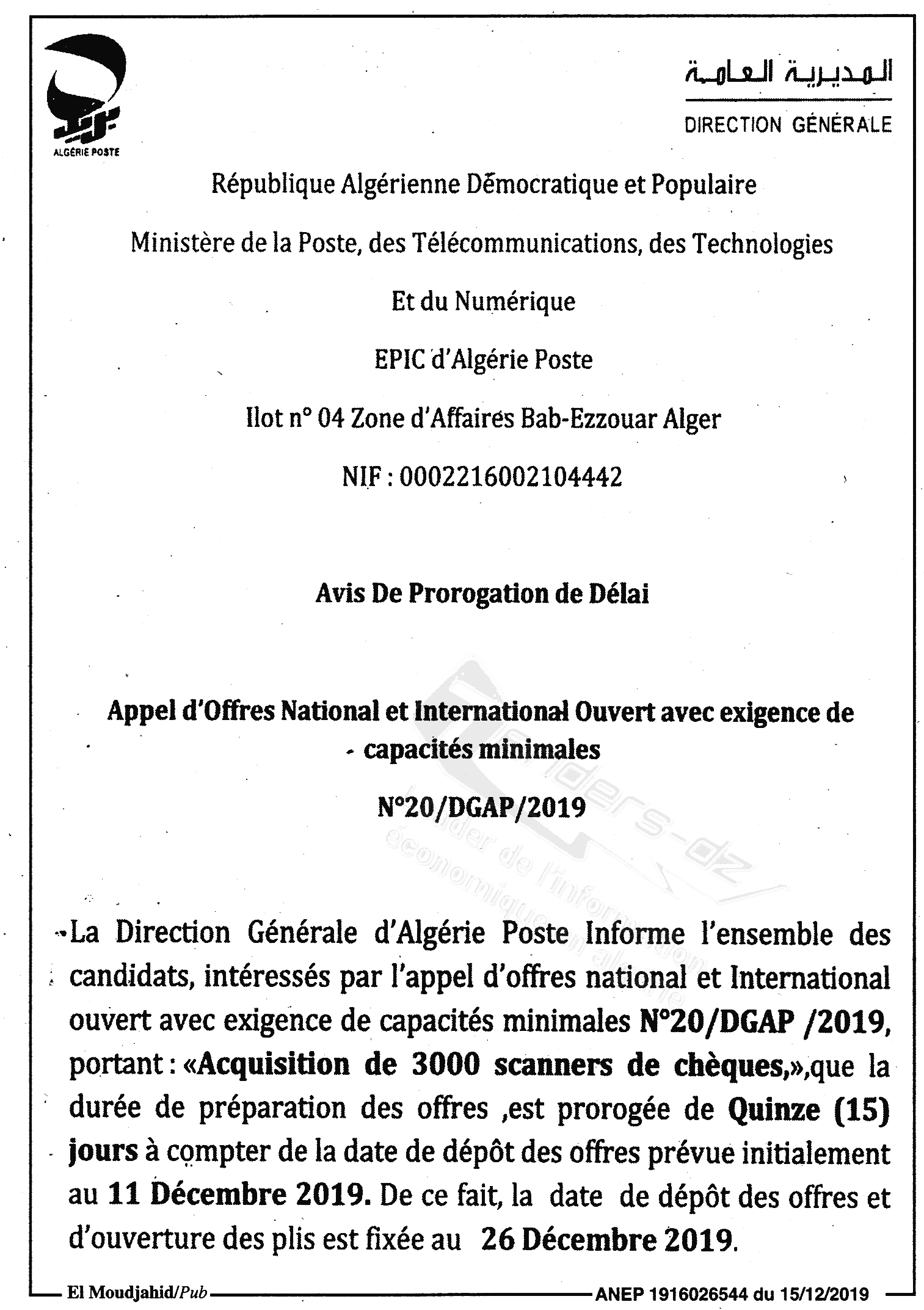 | Montant de Retrait du Cahier de Charges : 10.000,00 DA |