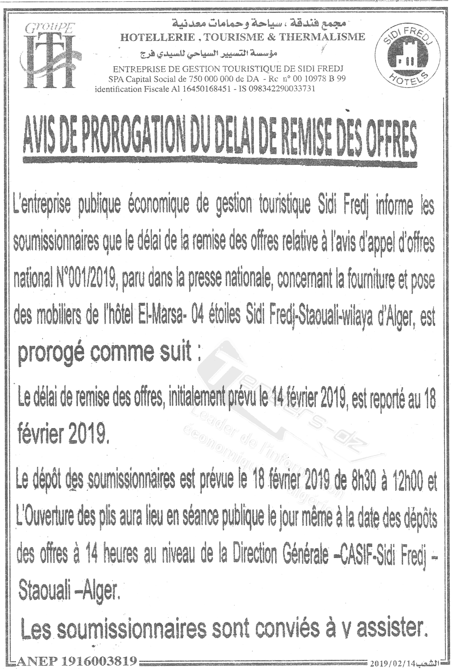 EGT SIDI FREDJ (ENTREPRISE DE GESTION TOURISTIQUE)