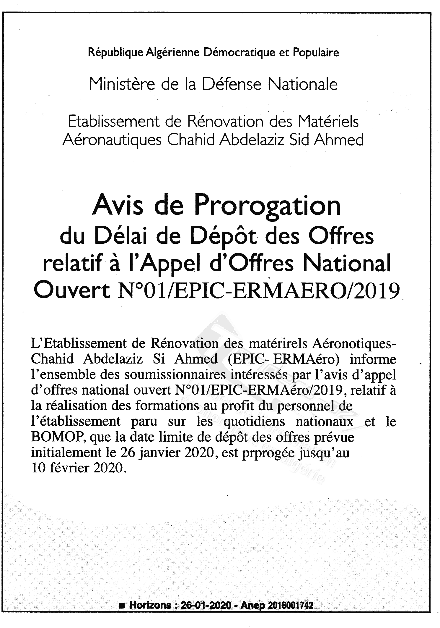 MDN/MINISTERE DE LA DEFENCE NATIONALE /ERMAERO (ETABLISSEMENT DE RENOVATION DES MATERIELS AERONAUTIQUES)
