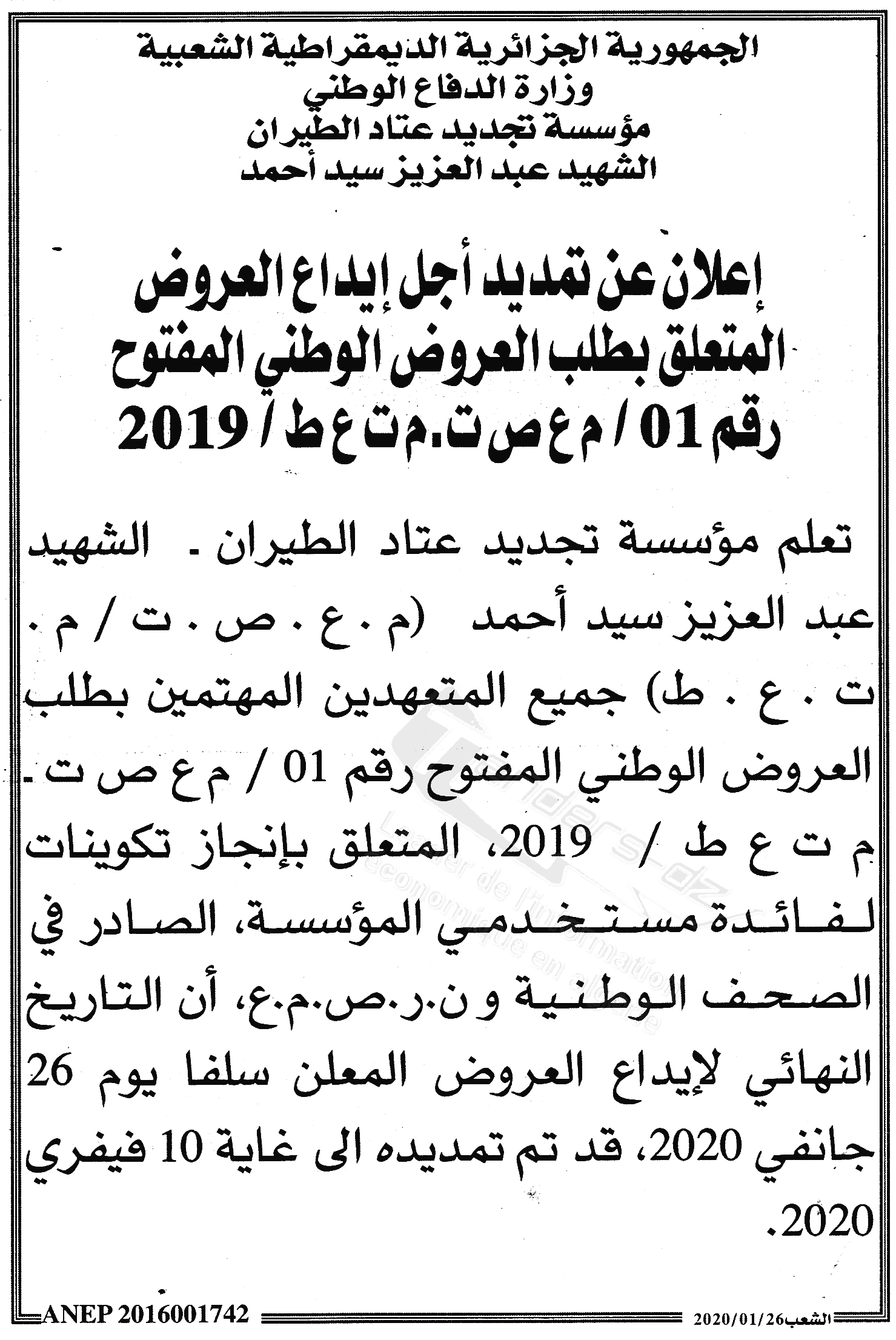 Avenue Mohamed Khemisti.Dar El Beida .Bp 142 Alger