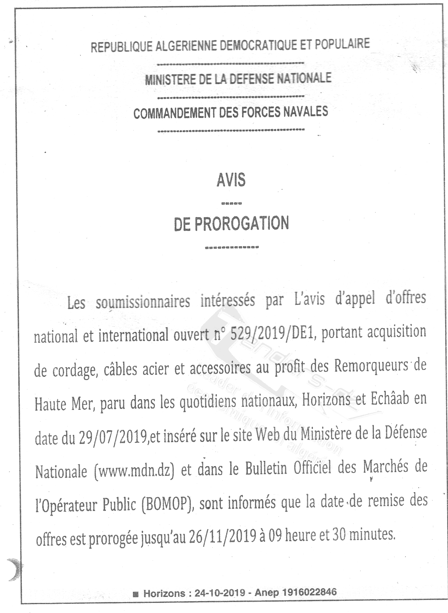 | Montant de Retrait du Cahier de Charges : 5.000.00 DA |