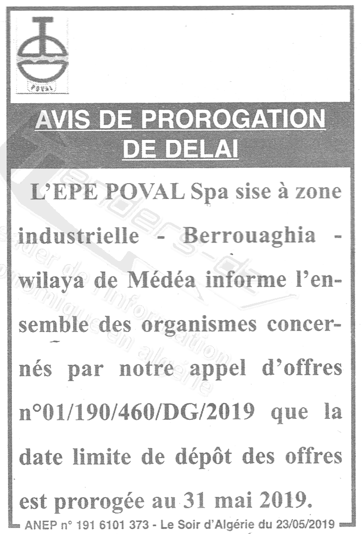 | Montant de Retrait du Cahier de Charges : 5000 DA |