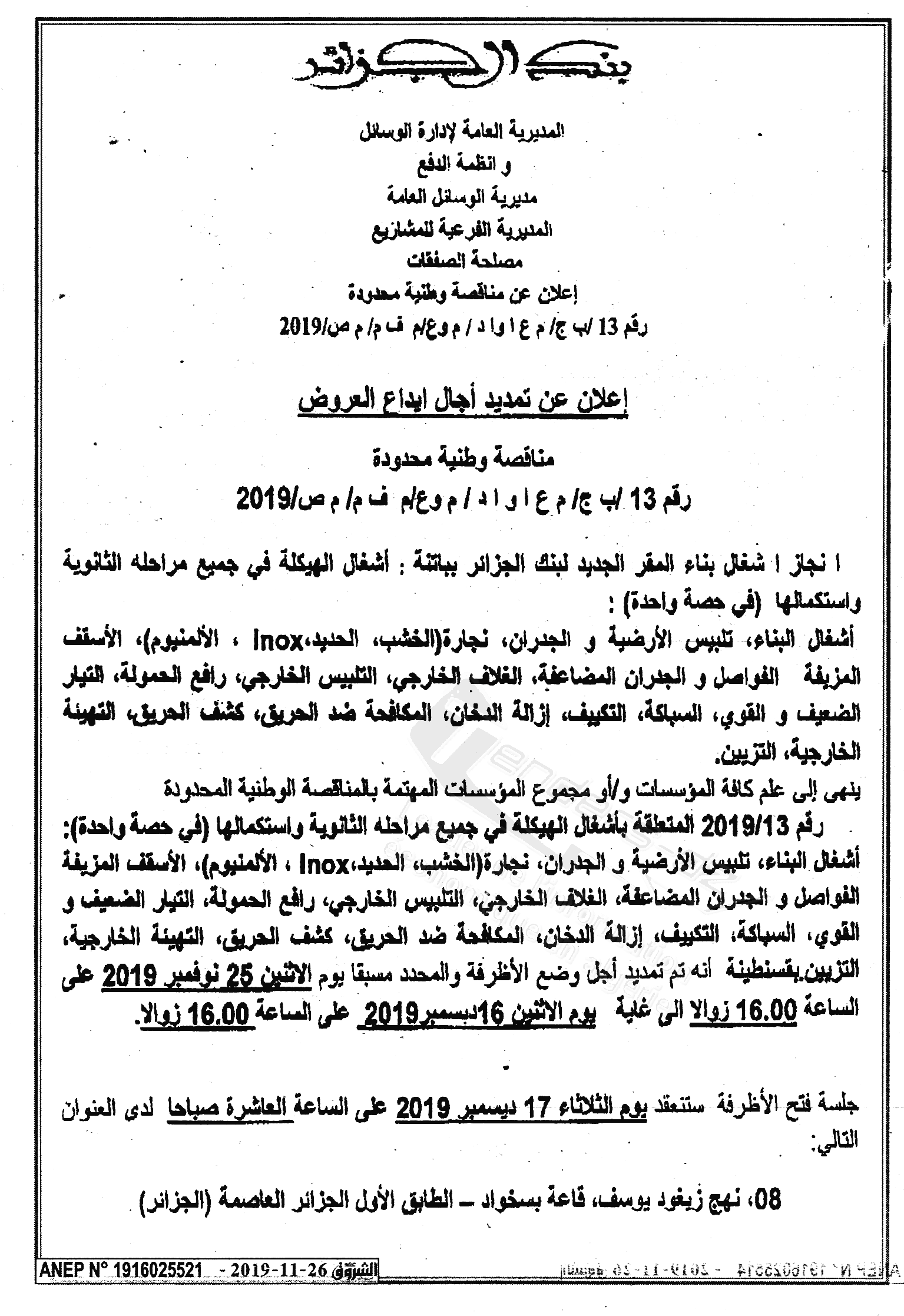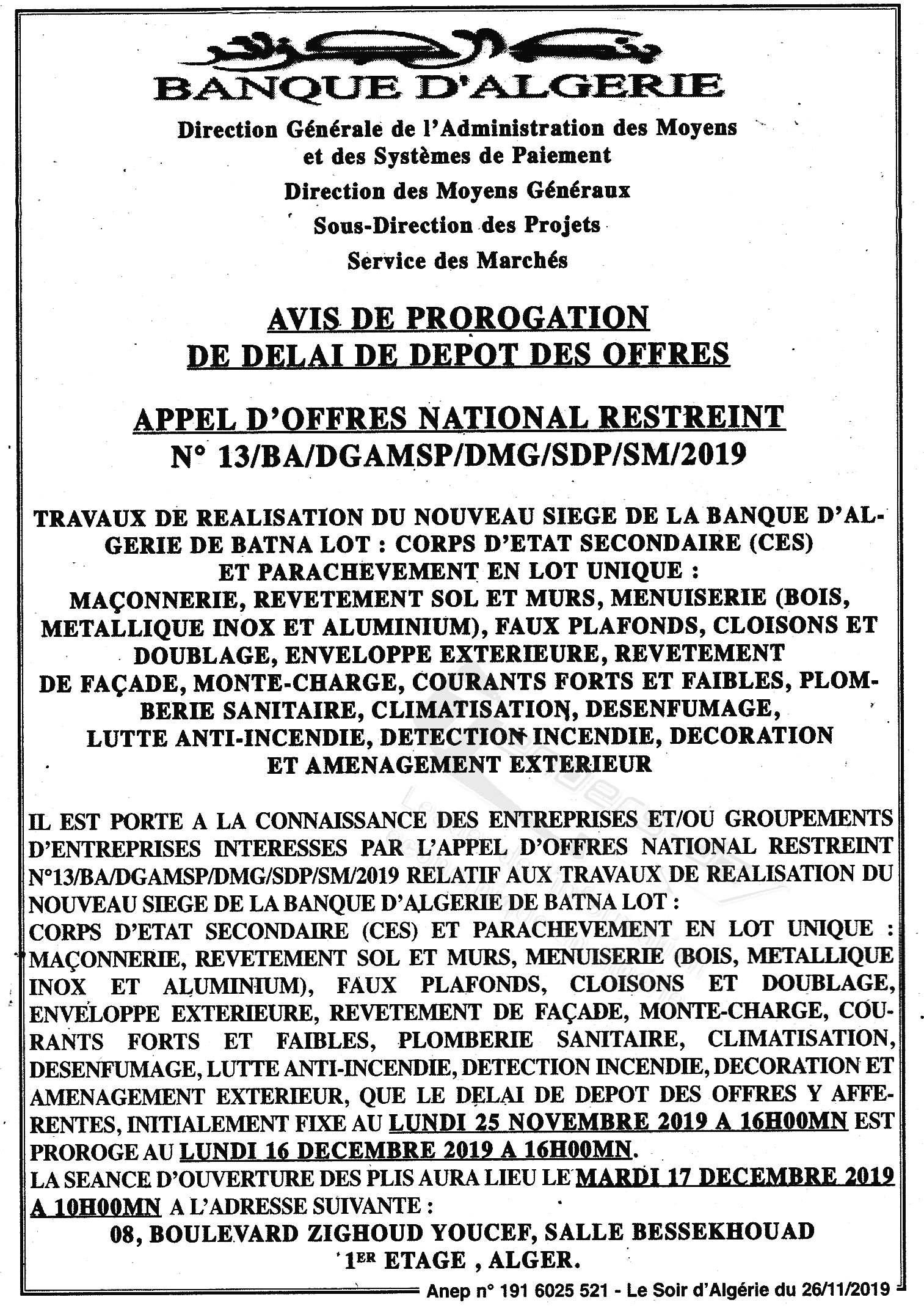 | Montant de Retrait du Cahier de Charges : 3.000.00 DA |