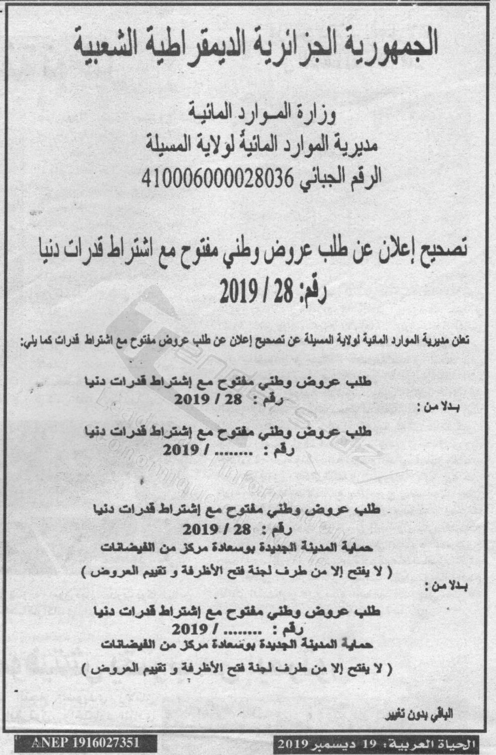 DRE WILAYA DE M'SILA (DIRECTION DES RESSOURCES EN EAU)