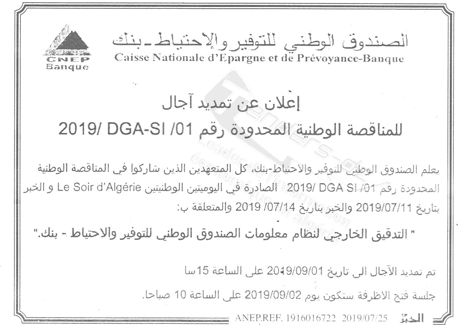 Objet : L'audit externe du systéme d'information de la CNEP-Banque