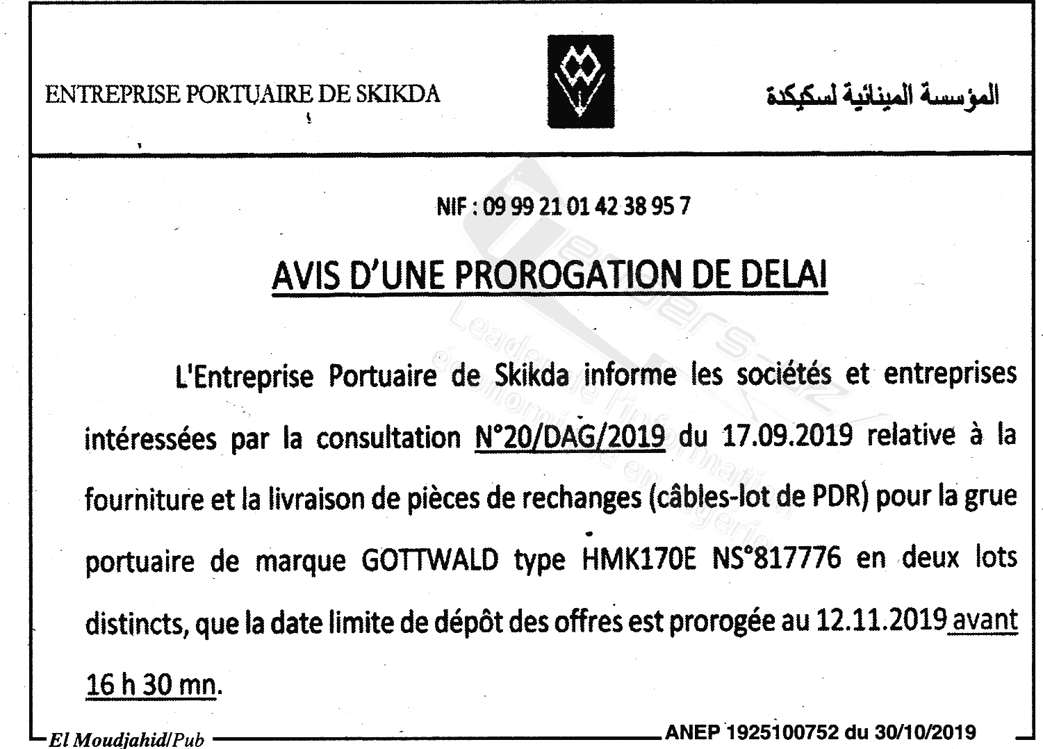 Nom Organisme : ENTREPRISE PORTUAIRE DE SKIKDA
