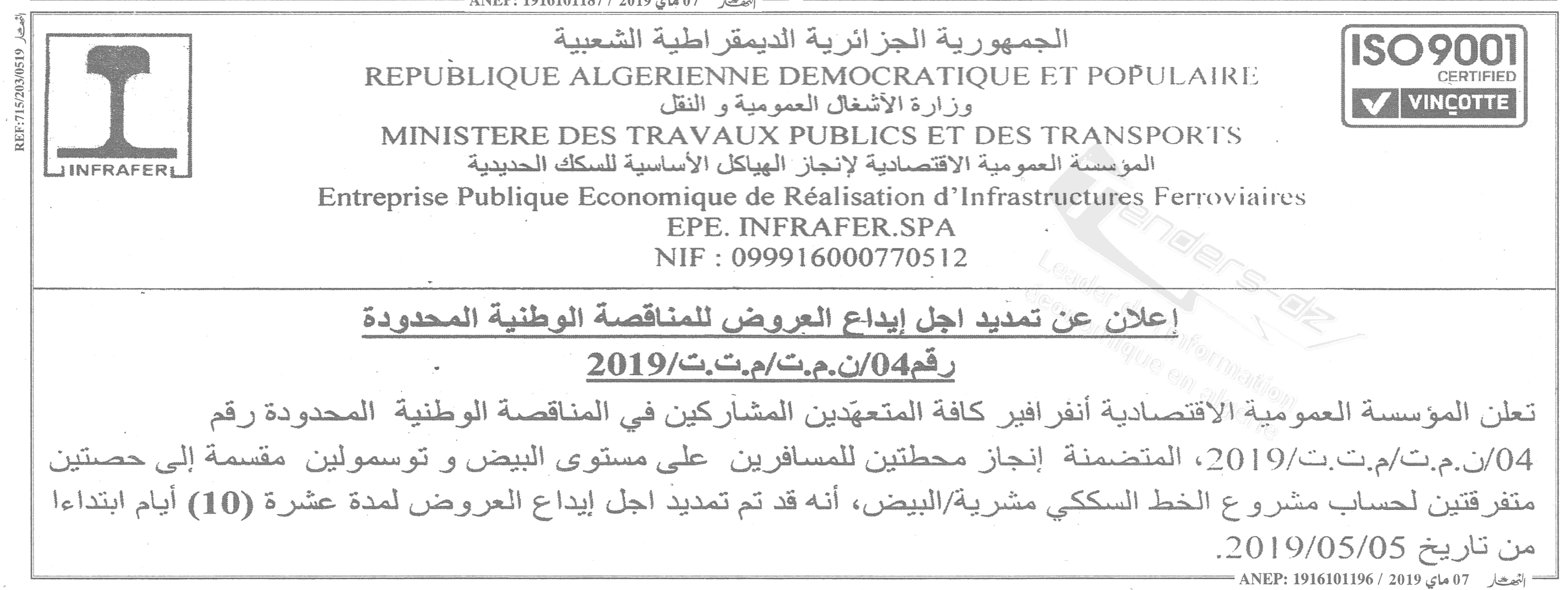 | Montant de Retrait du Cahier de Charges : 10.000,00 DA |