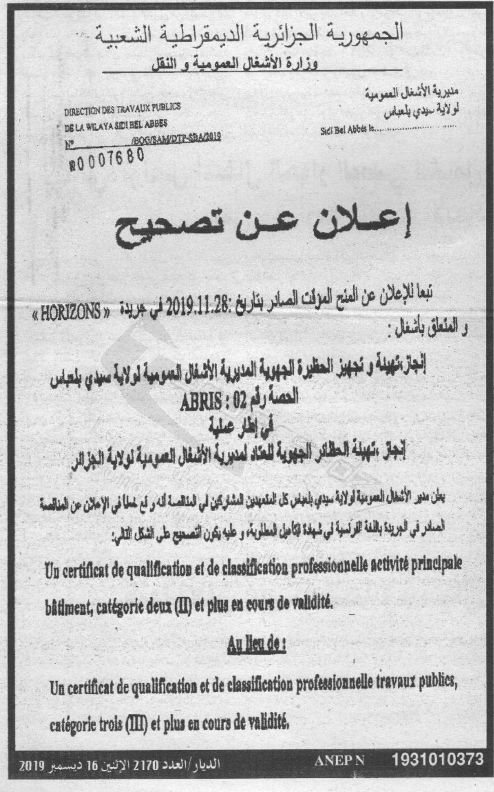 DTP WILAYA DE SIDI BEL ABBES (DIRECTION DES TRAVAUX PUBLICS)