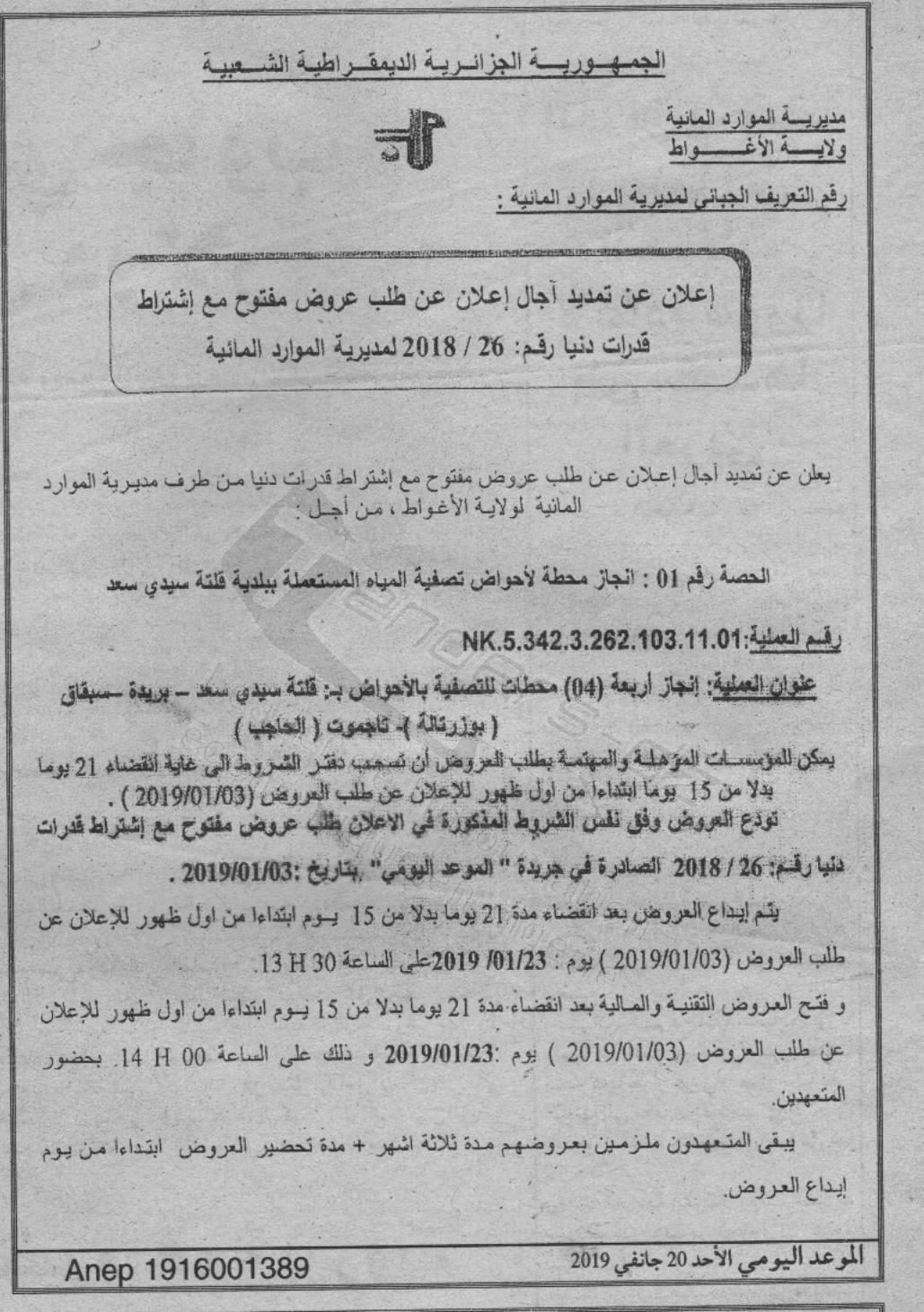 Objet : Lot N°01 : Réalisation d'une station de lagunage à Gultet Sidi Saad