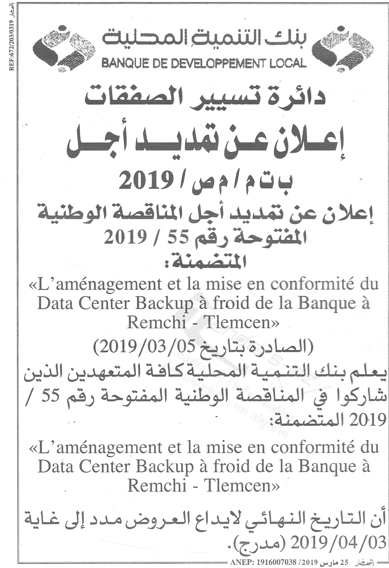 Objet : Aménagement et la mise en conformité du data centre Backup à froid de Banque à Remchi - Tlemcen
