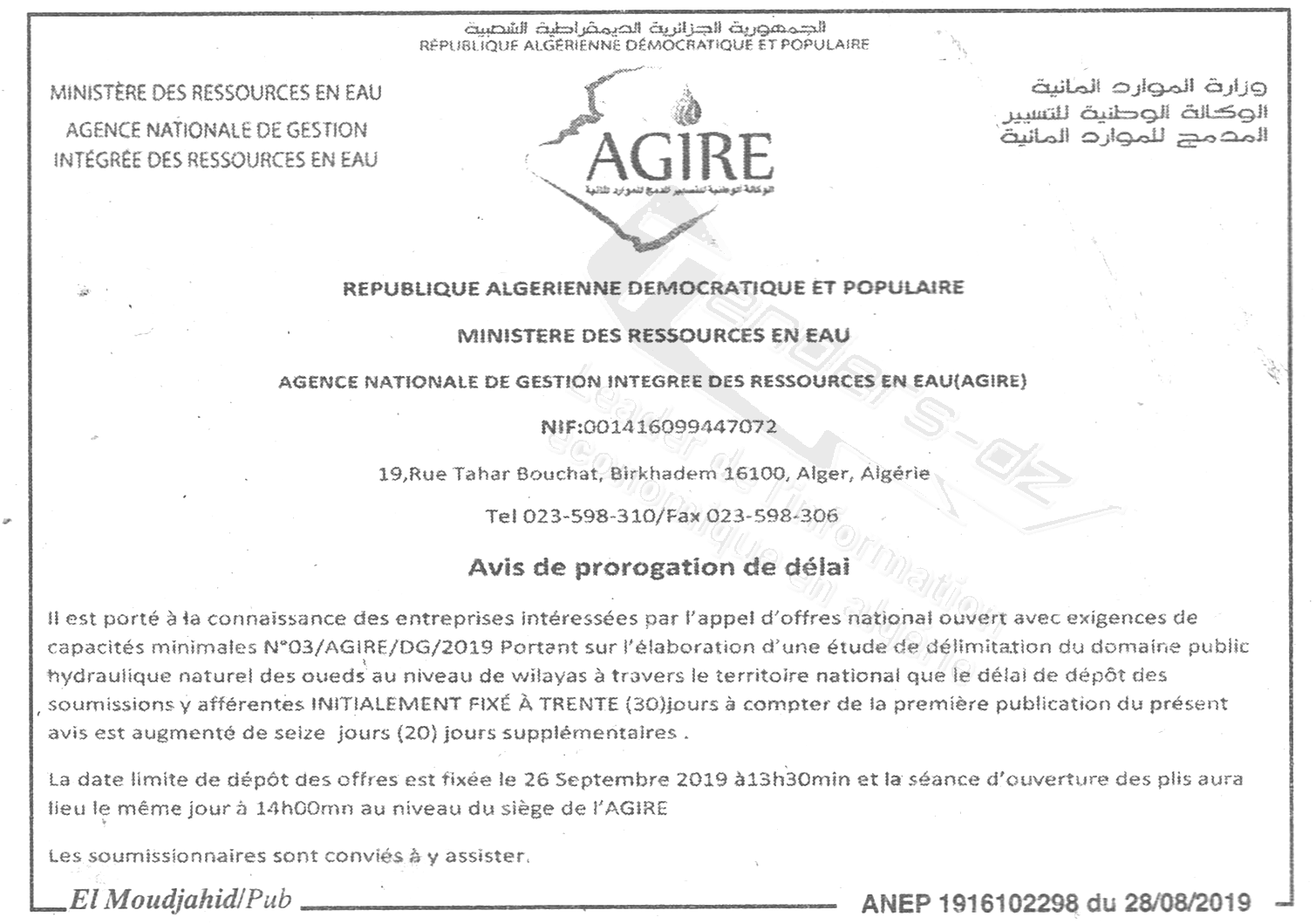 Site Web : www.agire.dz |