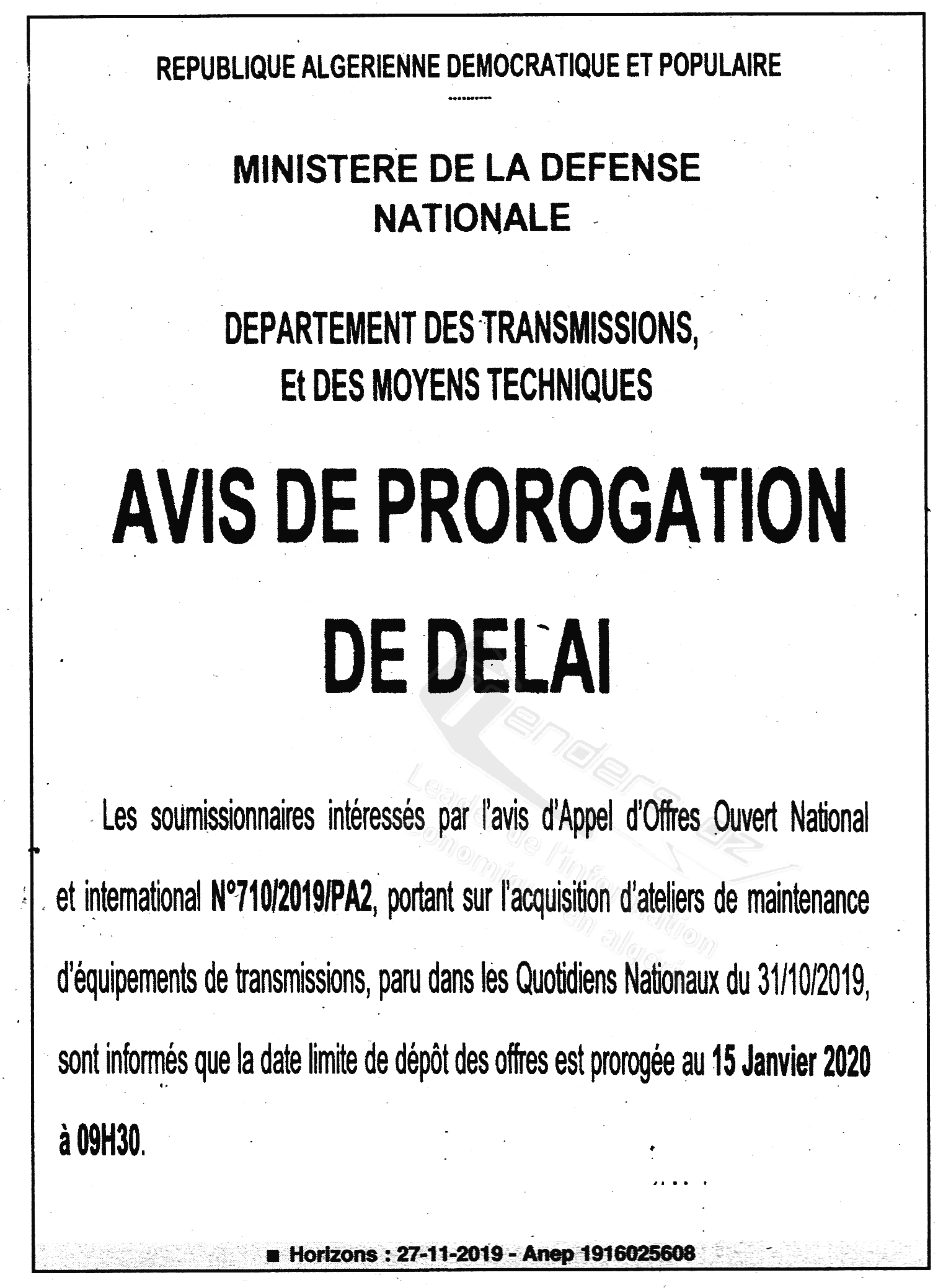 | Montant de Retrait du Cahier de Charges : 10.000,00 DA |