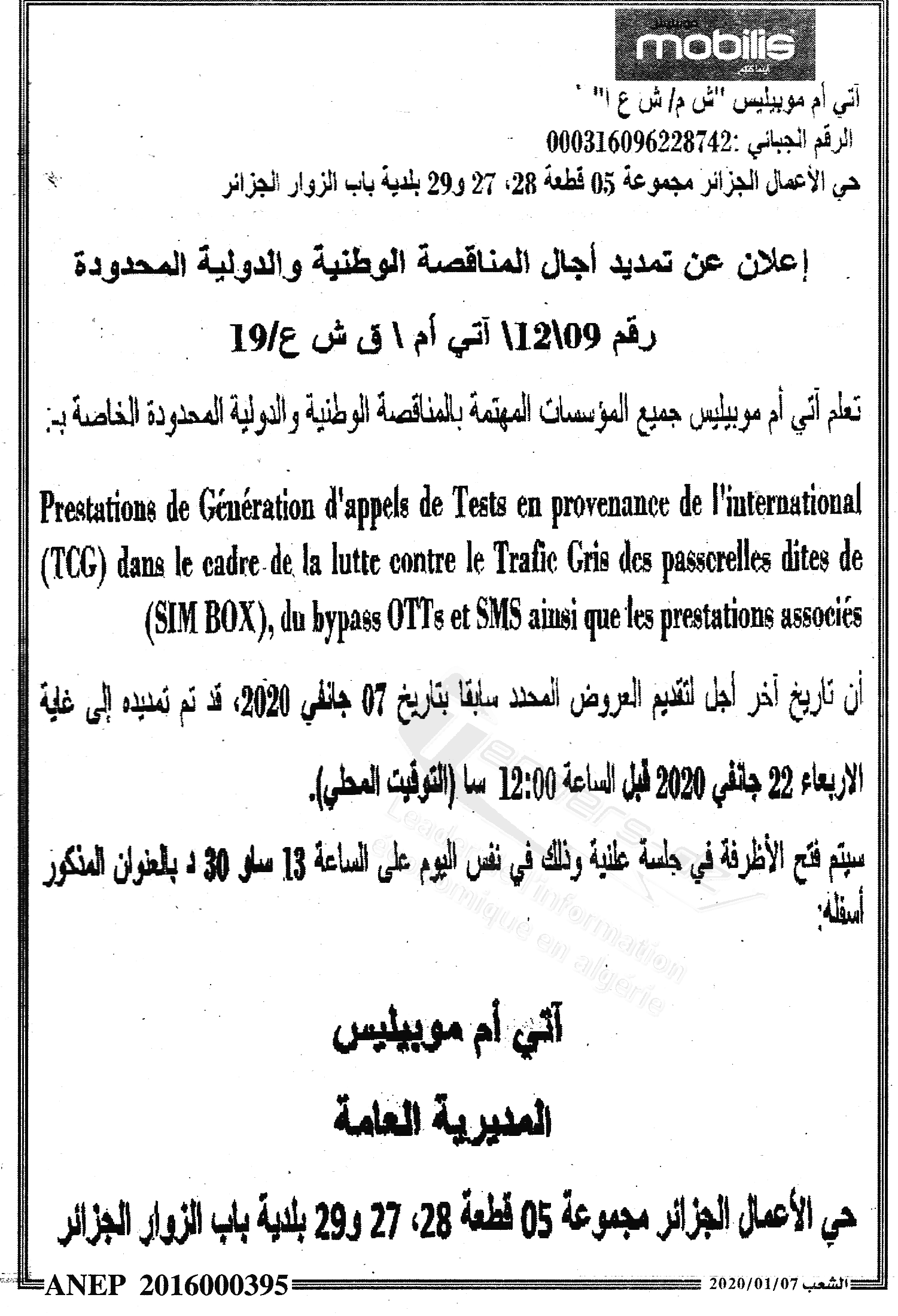 | Montant de Retrait du Cahier de Charges : Non Mentionné |