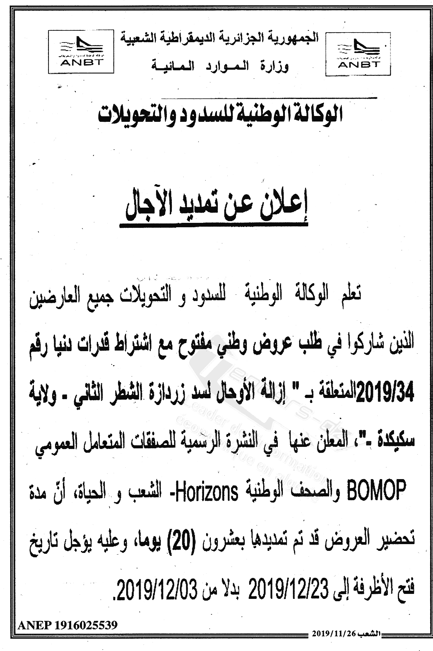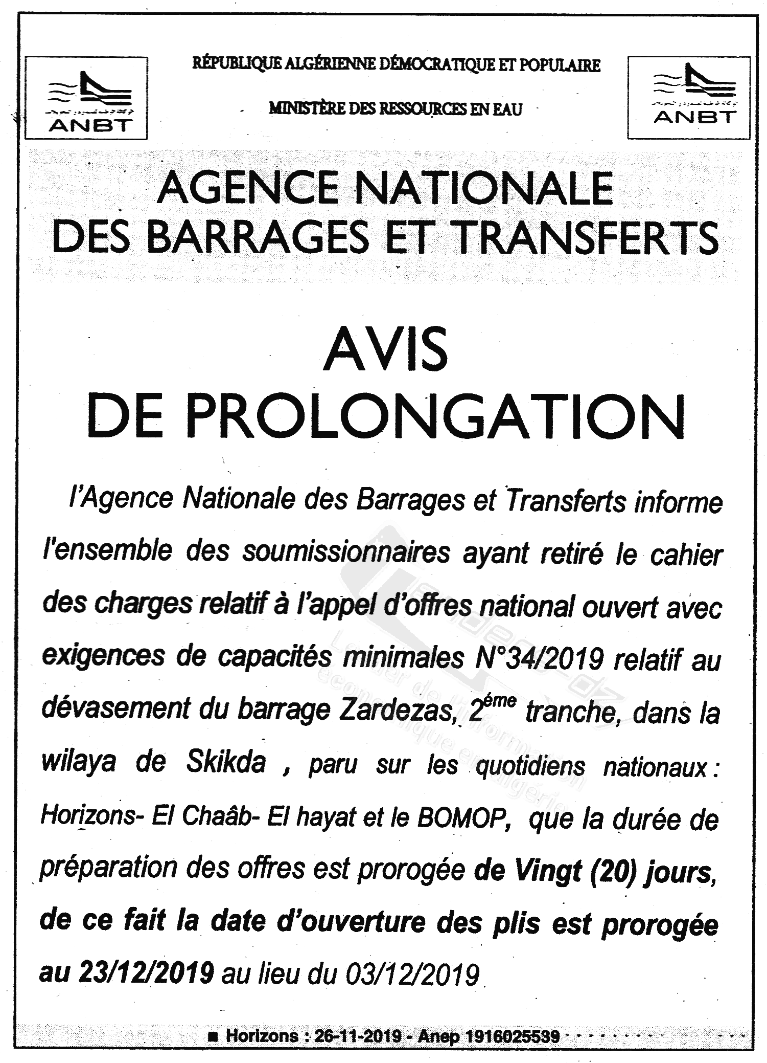 | Montant de Retrait du Cahier de Charges : 10.000.00 DA |
