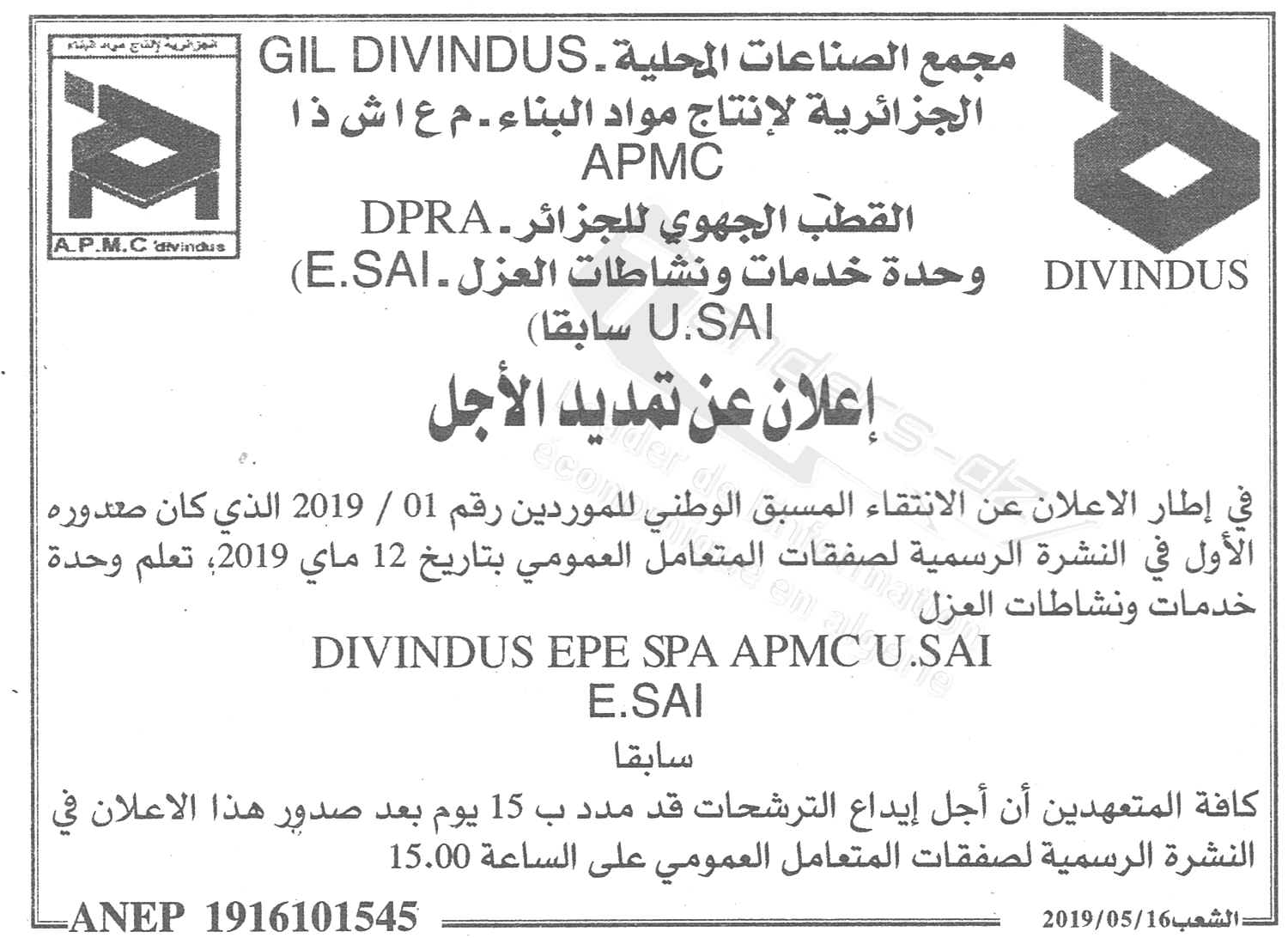 | Montant de Retrait du Cahier de Charges : Non Mentionnée |