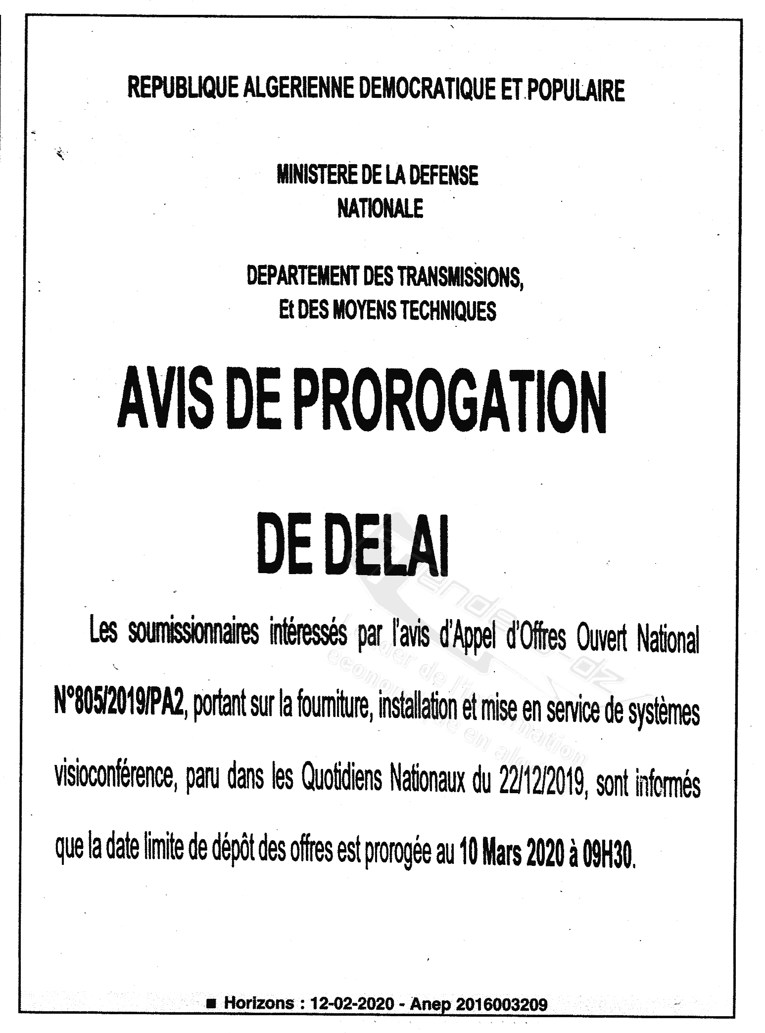 PROROGATION DE DELAI |