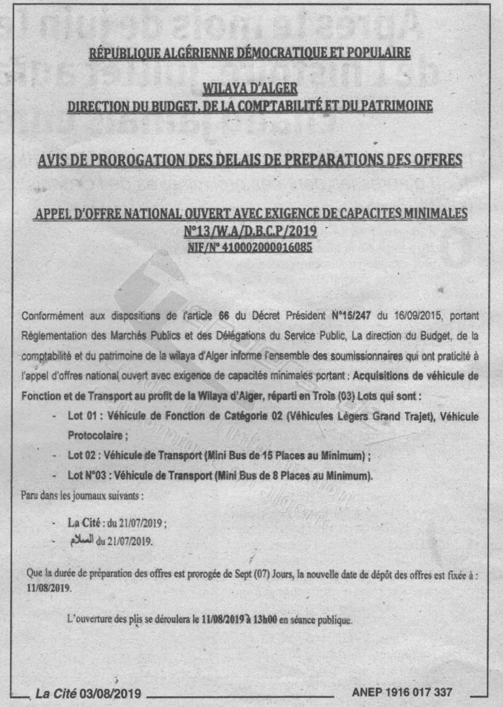 Site Web : www.wilaya-alger.dz |