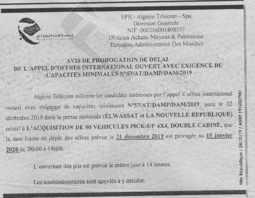 | Montant de Retrait du Cahier de Charges : 10.000,00 DA |