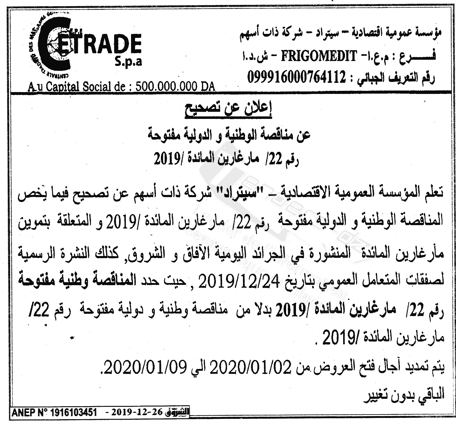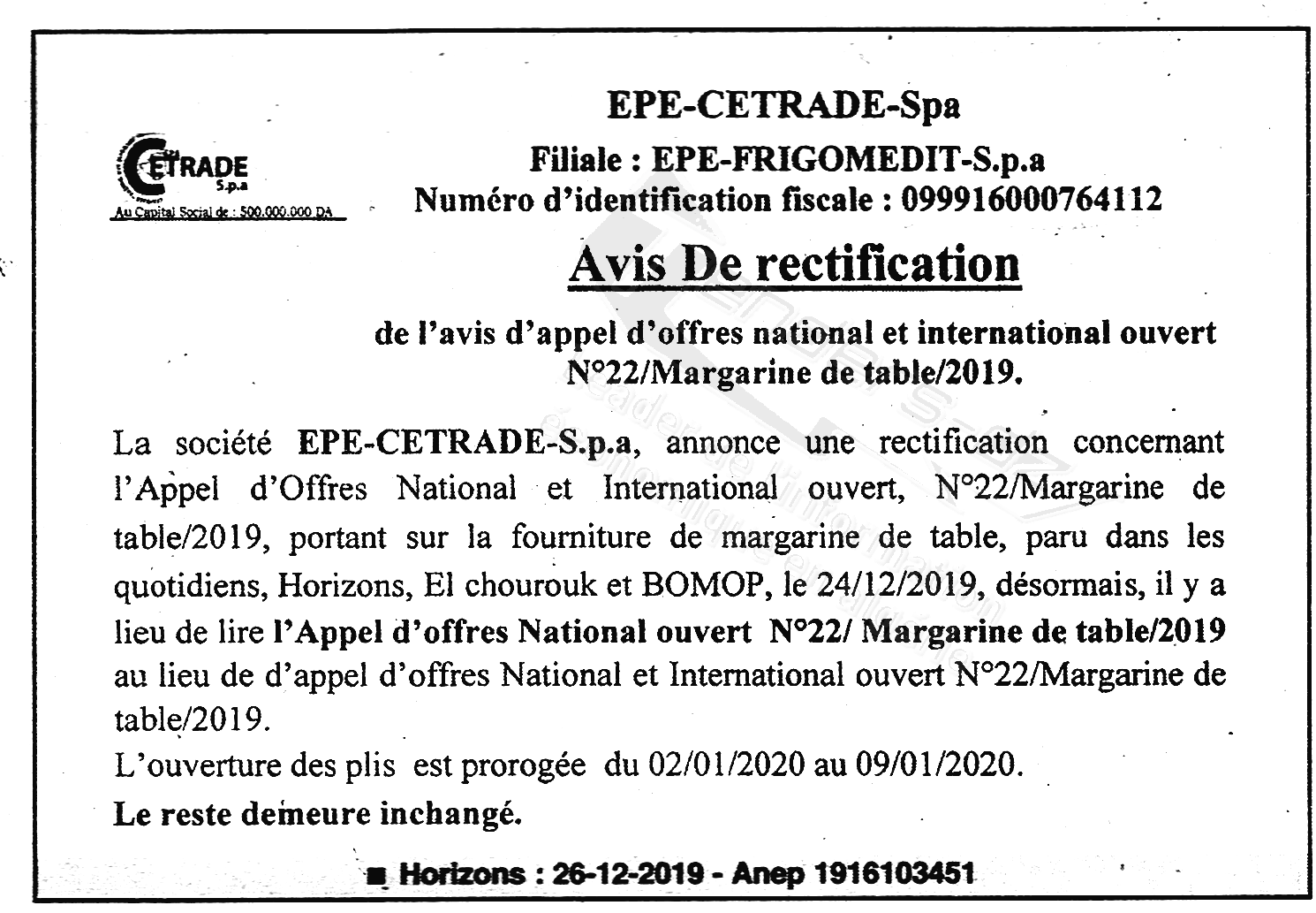 | Montant de Retrait du Cahier de Charges : 5000.00 DA |