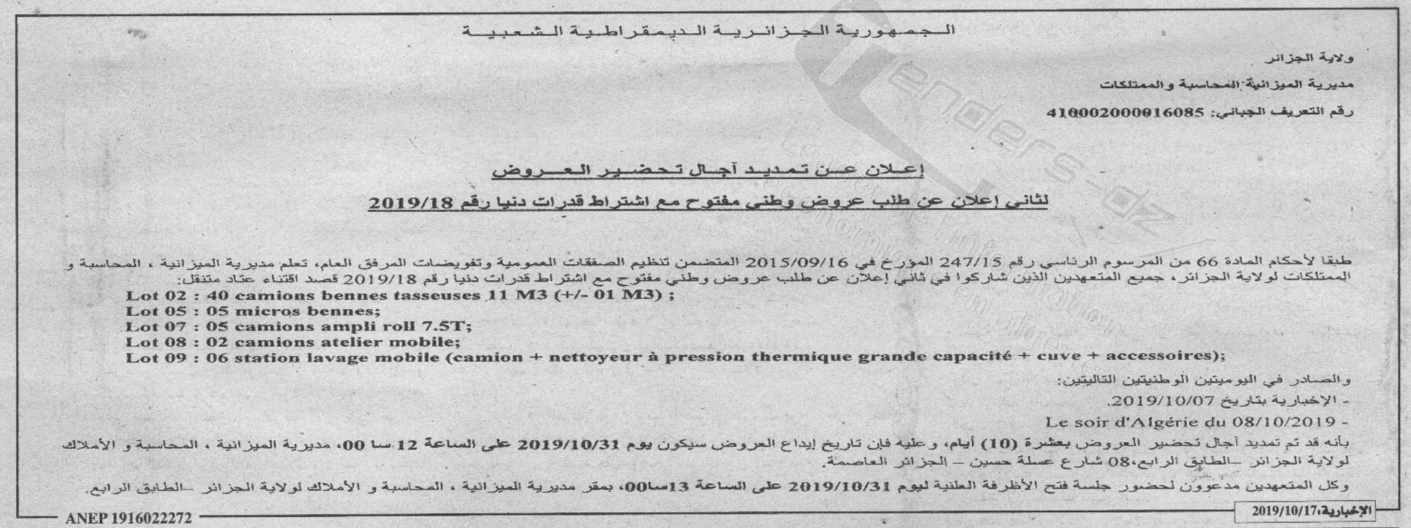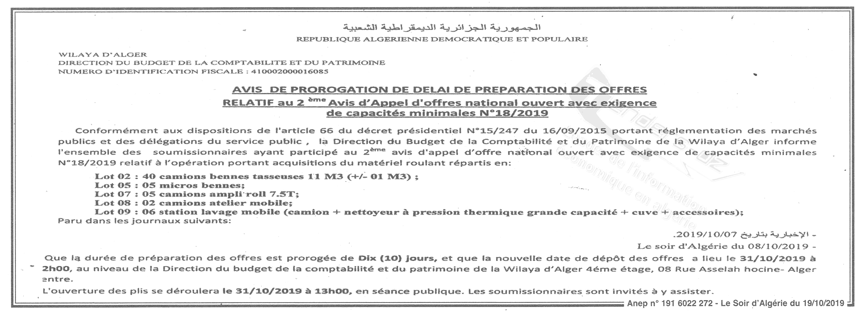 | Montant de Retrait du Cahier de Charges : 4000 DA |