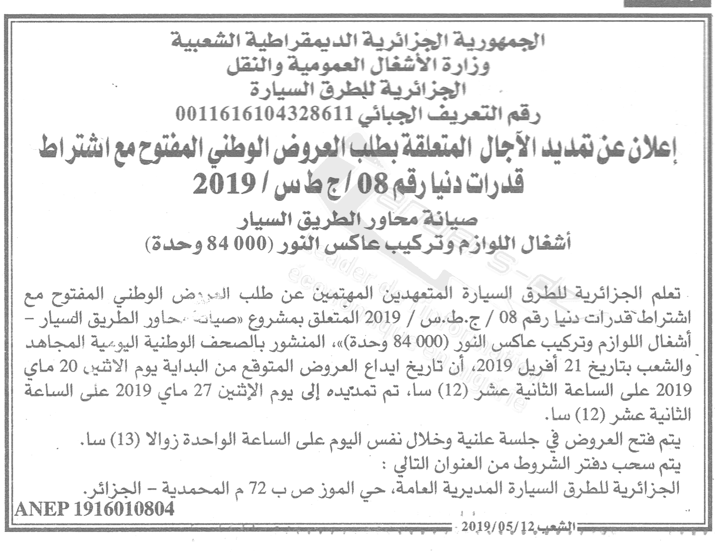 | Montant de Retrait du Cahier de Charges : 5000 DA |