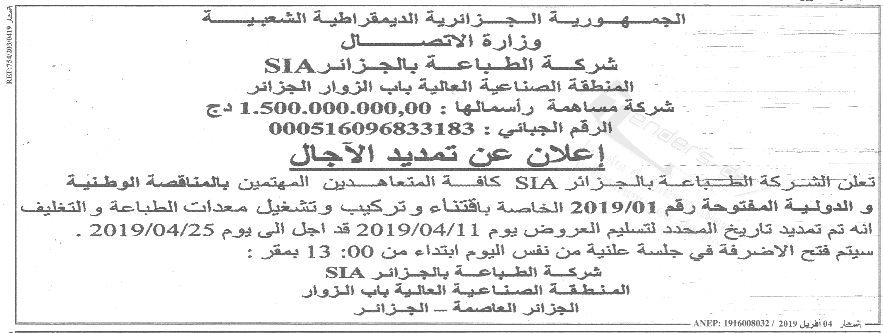 Objet : Acquisition, installation et mise en marche d'équipements d'impression et finition d'emballage