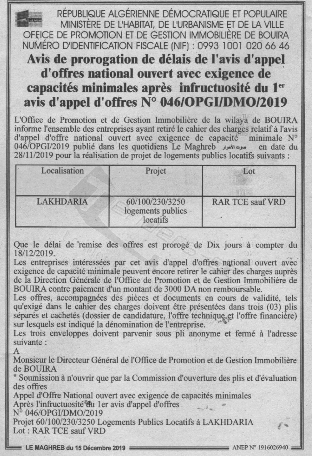 OPGI WILAYA DE BOUIRA (OFFICE DE PROMOTION ET DE GESTION IMMOBILIERE)