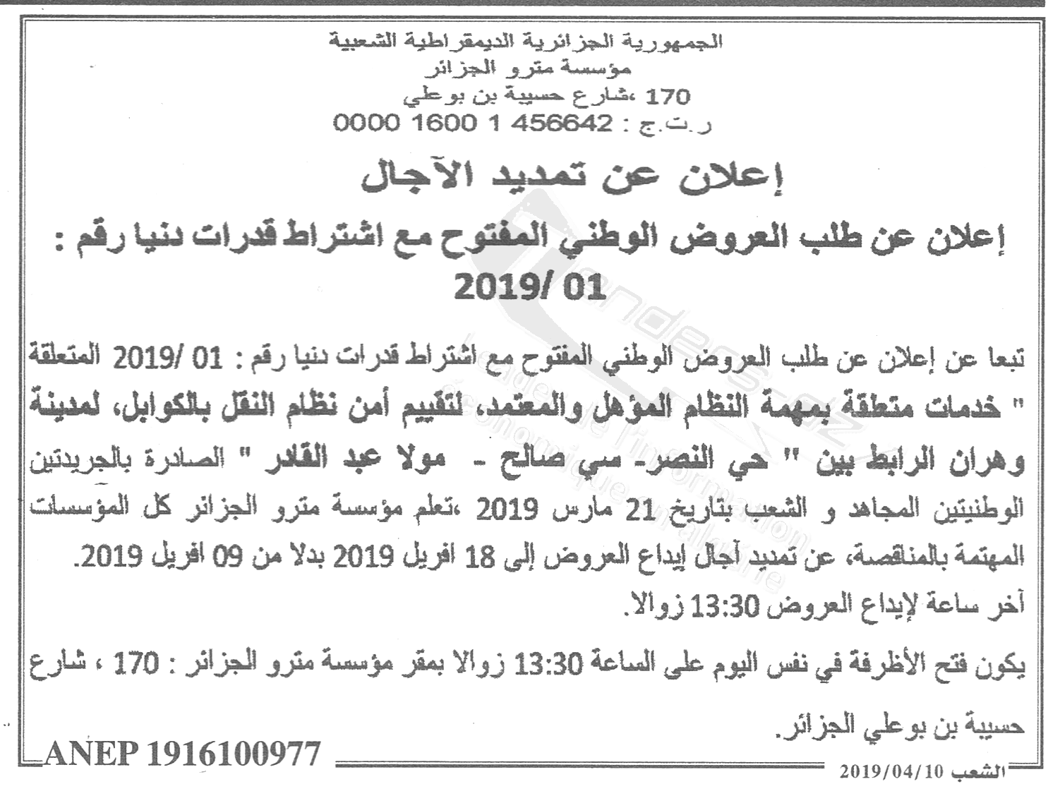 ENTREPRISE METRO D'ALGER