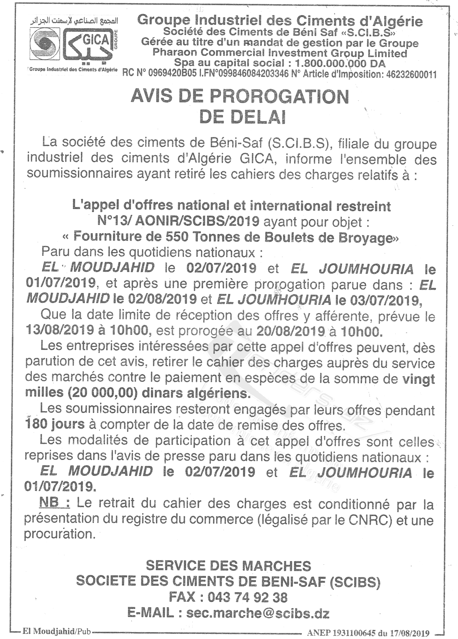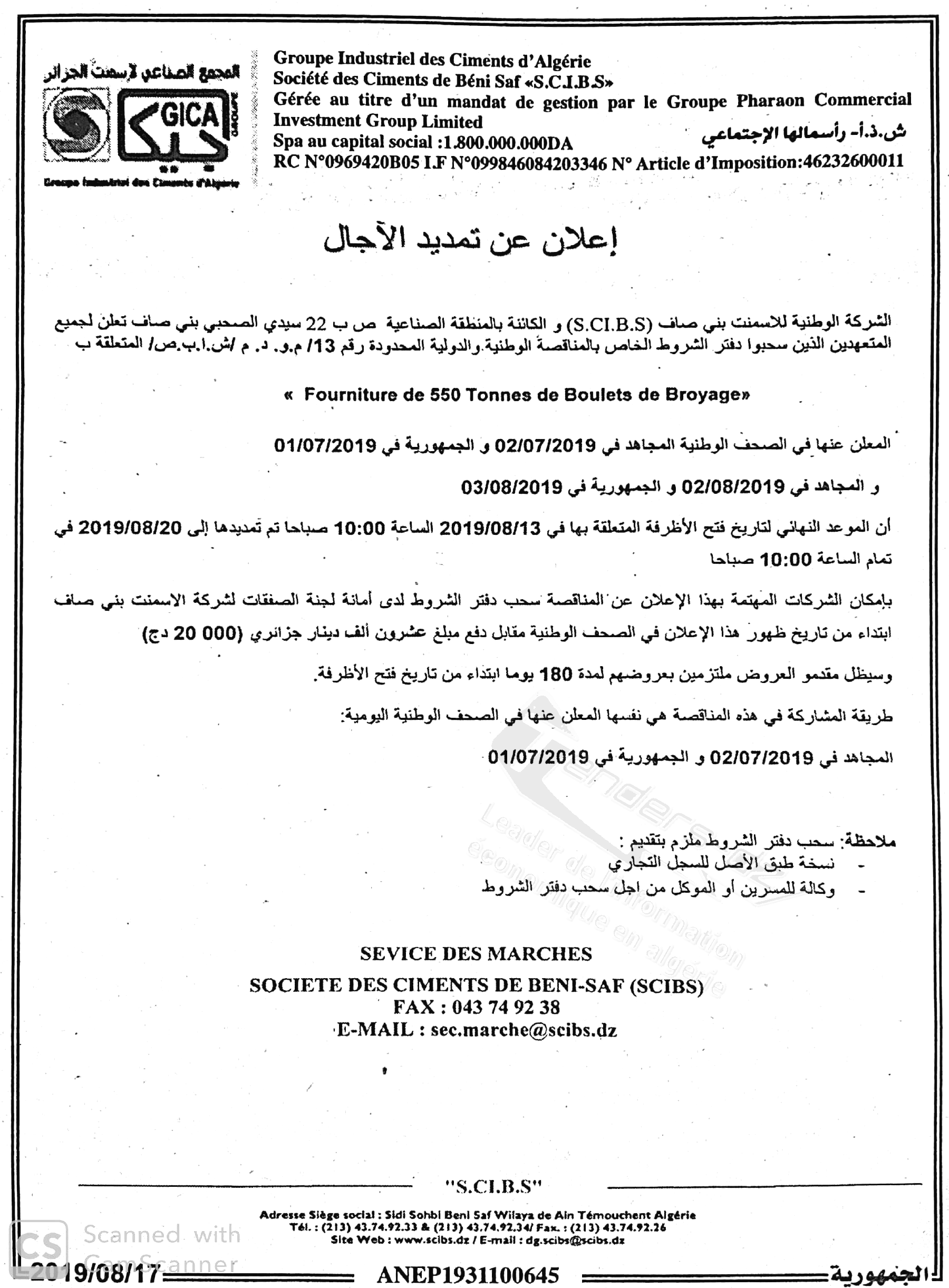 Nom Organisme : SCIBS (SOCIÉTÉ DES CIMENTS DE BENI-SAF)