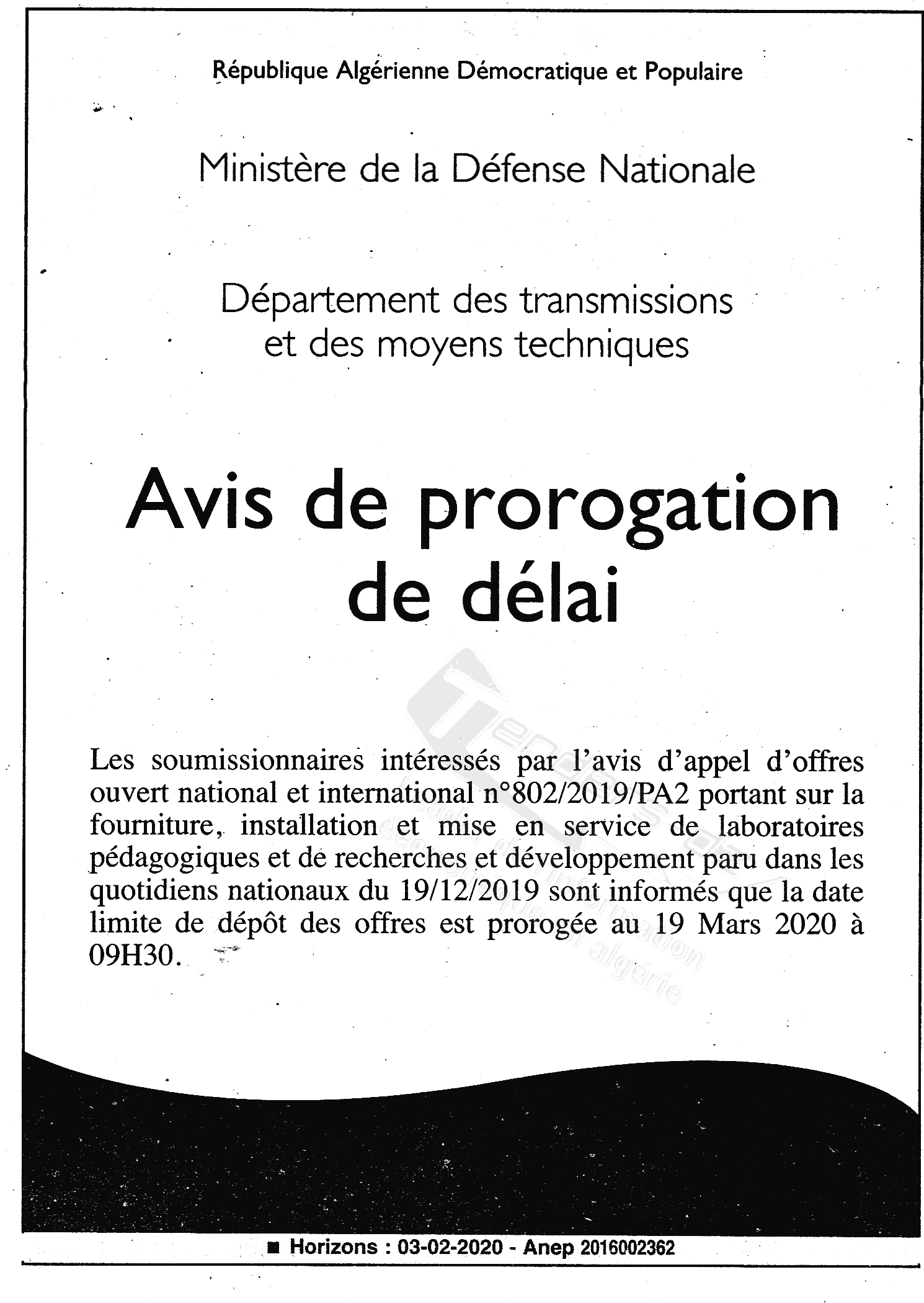| Montant de Retrait du Cahier de Charges : 10.000,00 DA |