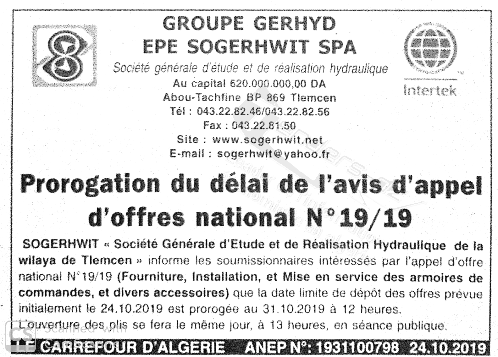 | Montant de Retrait du Cahier de Charges : 2000.00 DA |