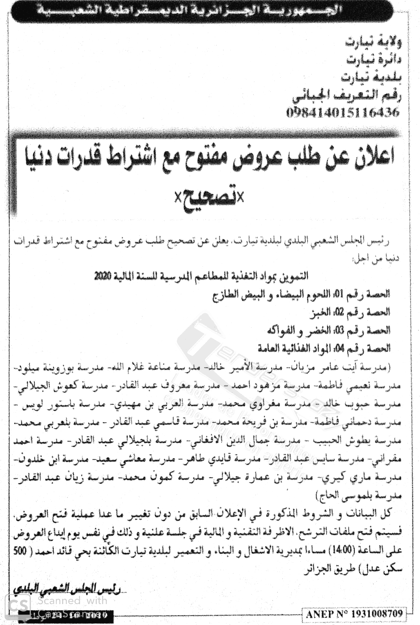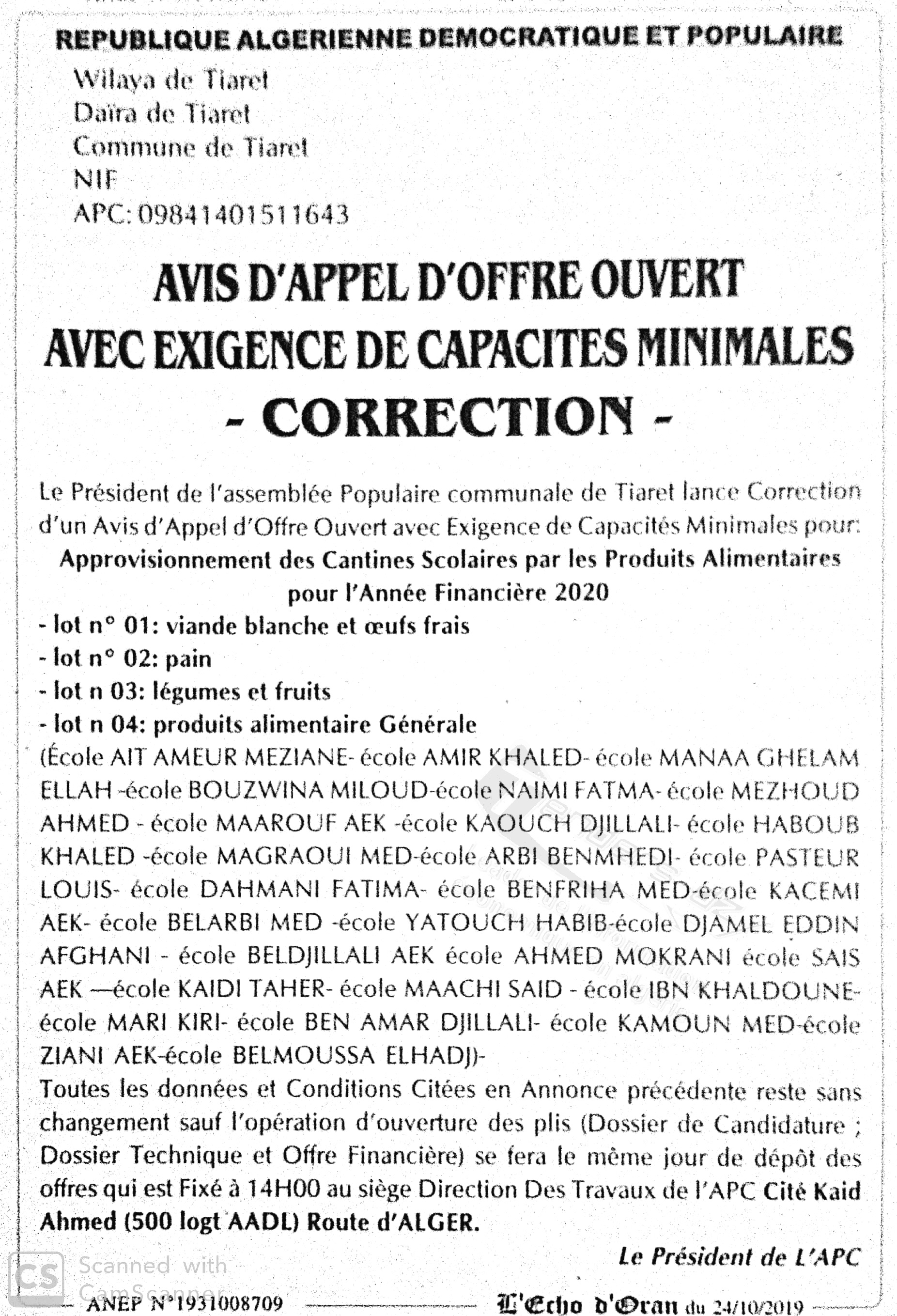 | Montant de Retrait du Cahier de Charges : 2000.00 DA |