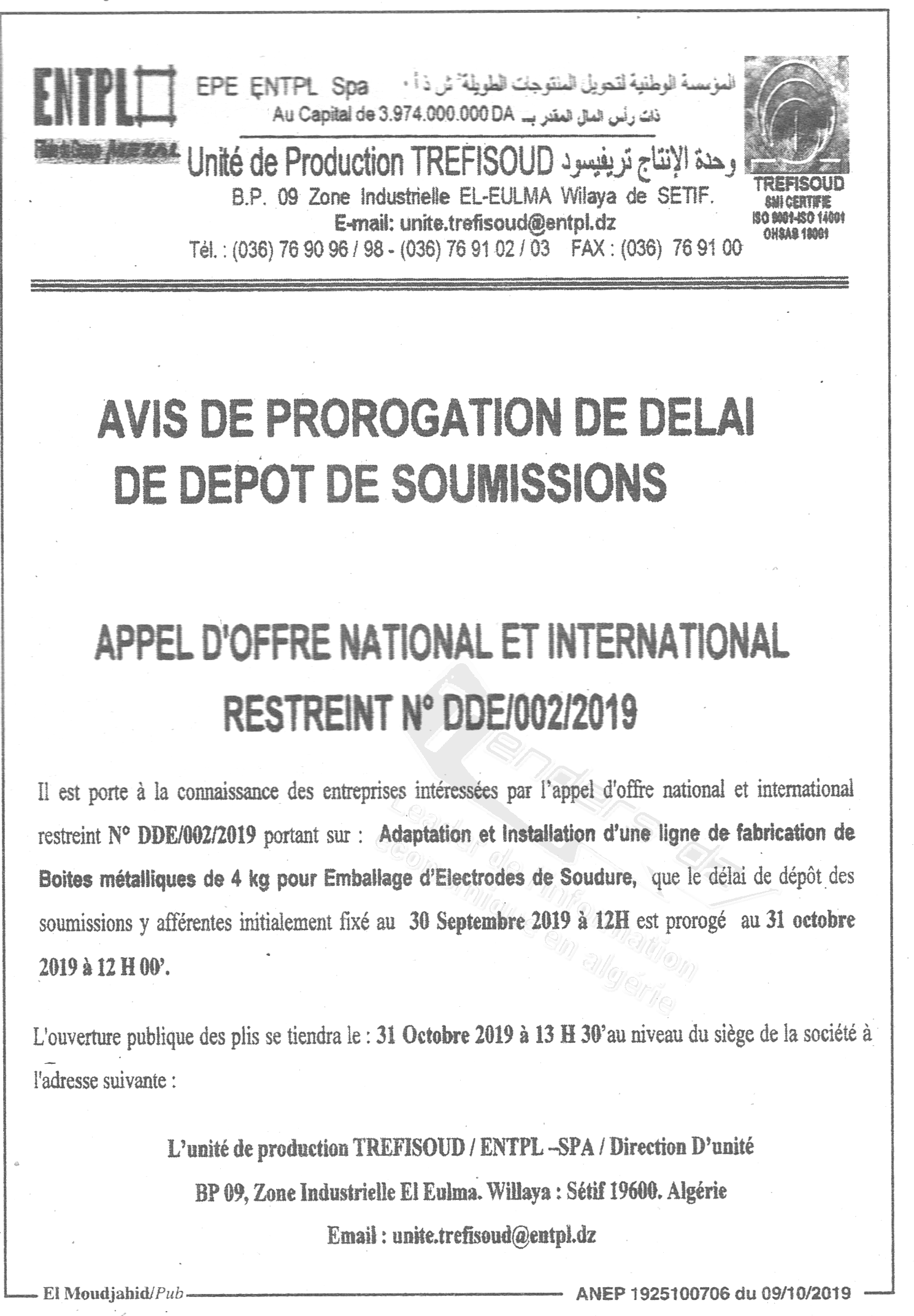 ENTPL/ UNITE TREFISOUD (ENTREPRISE NATIONALE DE TRANSFORMATION DES PRODUITS LONGS)