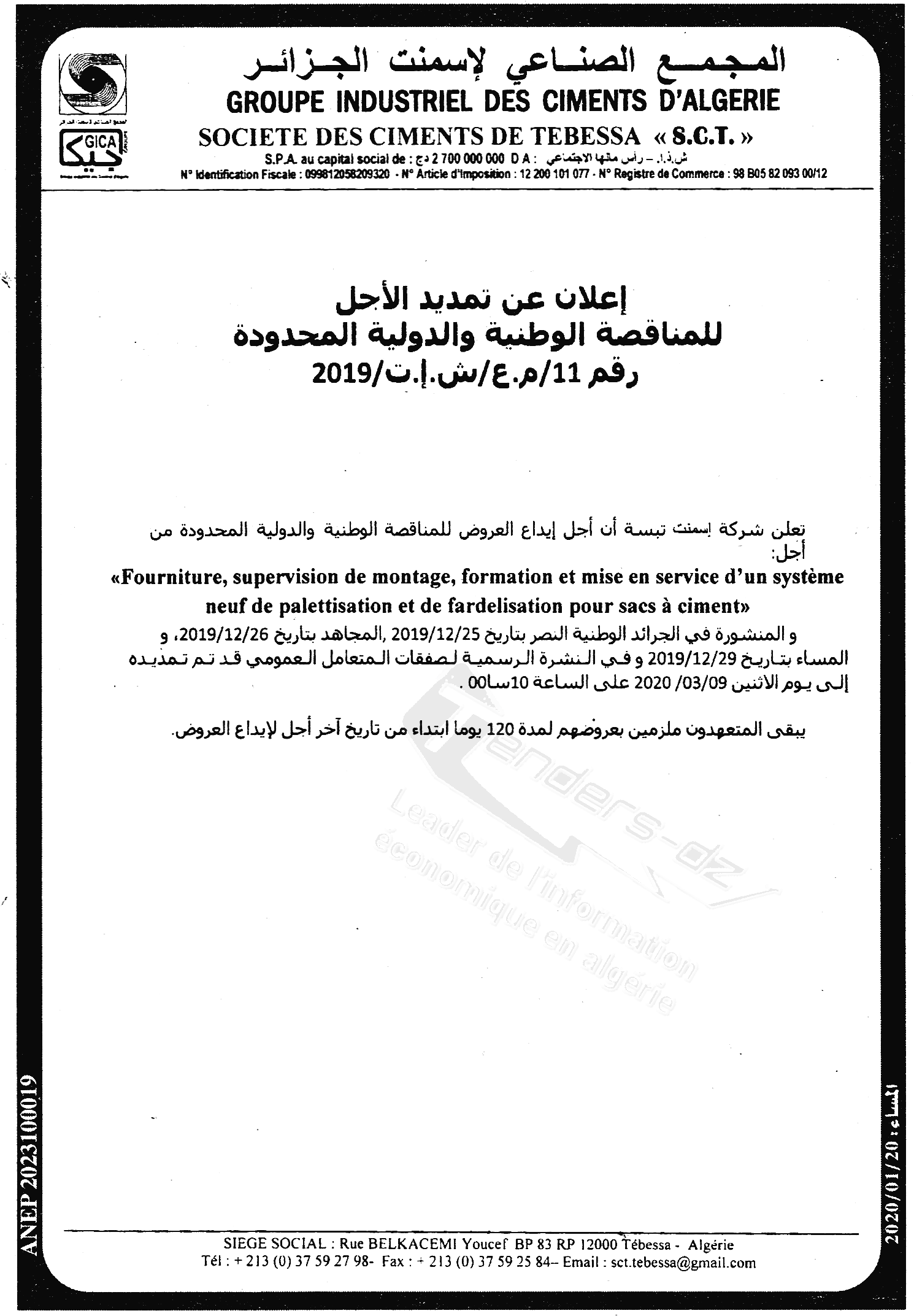 SCT (SOCIETE DES CIMENTS DE TEBESSA)