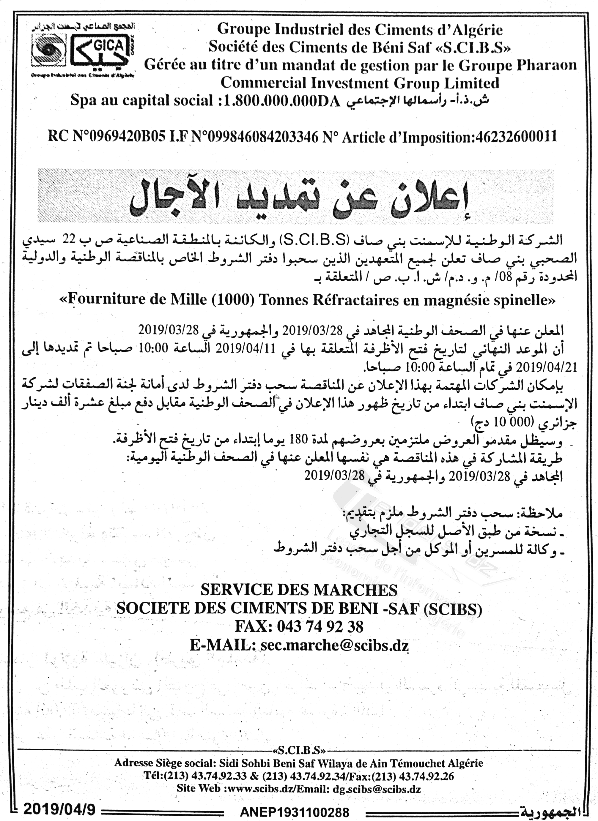 SCIBS (SOCIÃÂTÃÂ DES CIMENTS DE BENI-SAF)