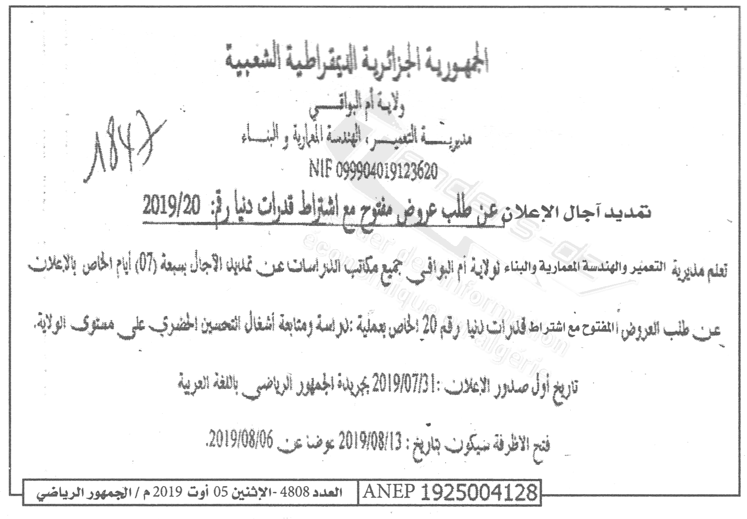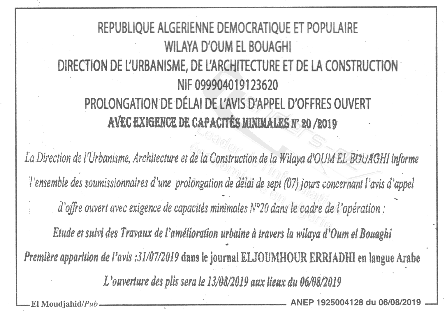 DUAC WILAYA D'OUM EL BOUAGHI (DIRECTION DE L'URBANISME, DE L'ARCHITECTURE ET DE LA CONSTRUCTION)