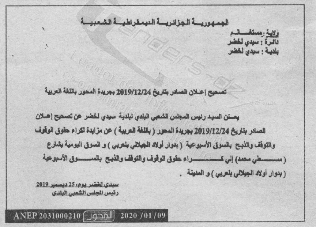 APC DE SIDI LAKHDAR WILAYA DE MOSTAGHANEM