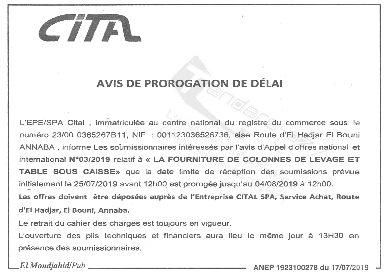 | Email : contact@cital-dz.com |