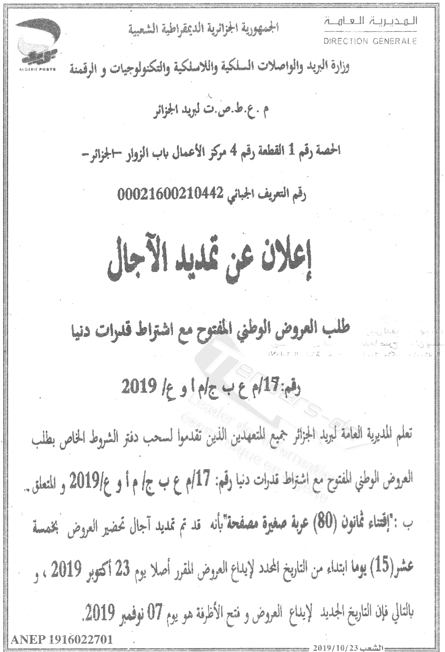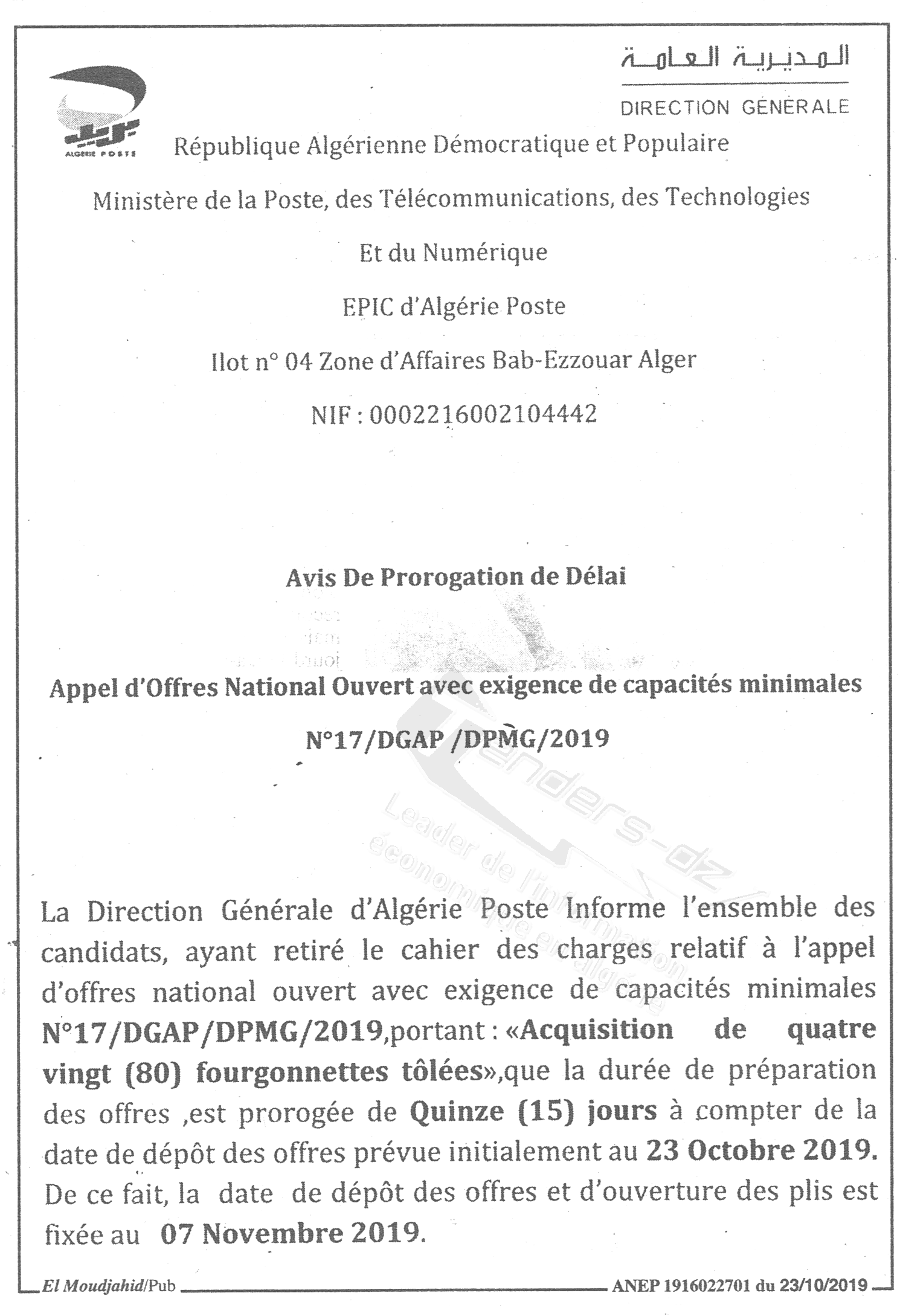| Montant de Retrait du Cahier de Charges : 10.000,00 DA |
