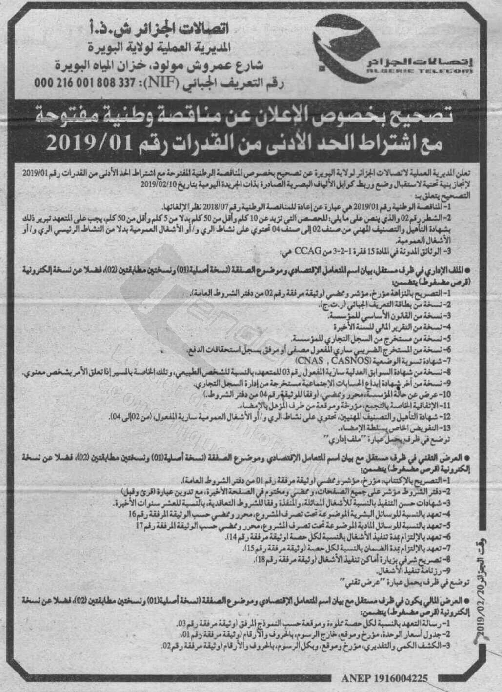 ALGERIE TELECOM/ DO WILAYA DE BOUIRA (DIRECTION OPERATIONNELLE)