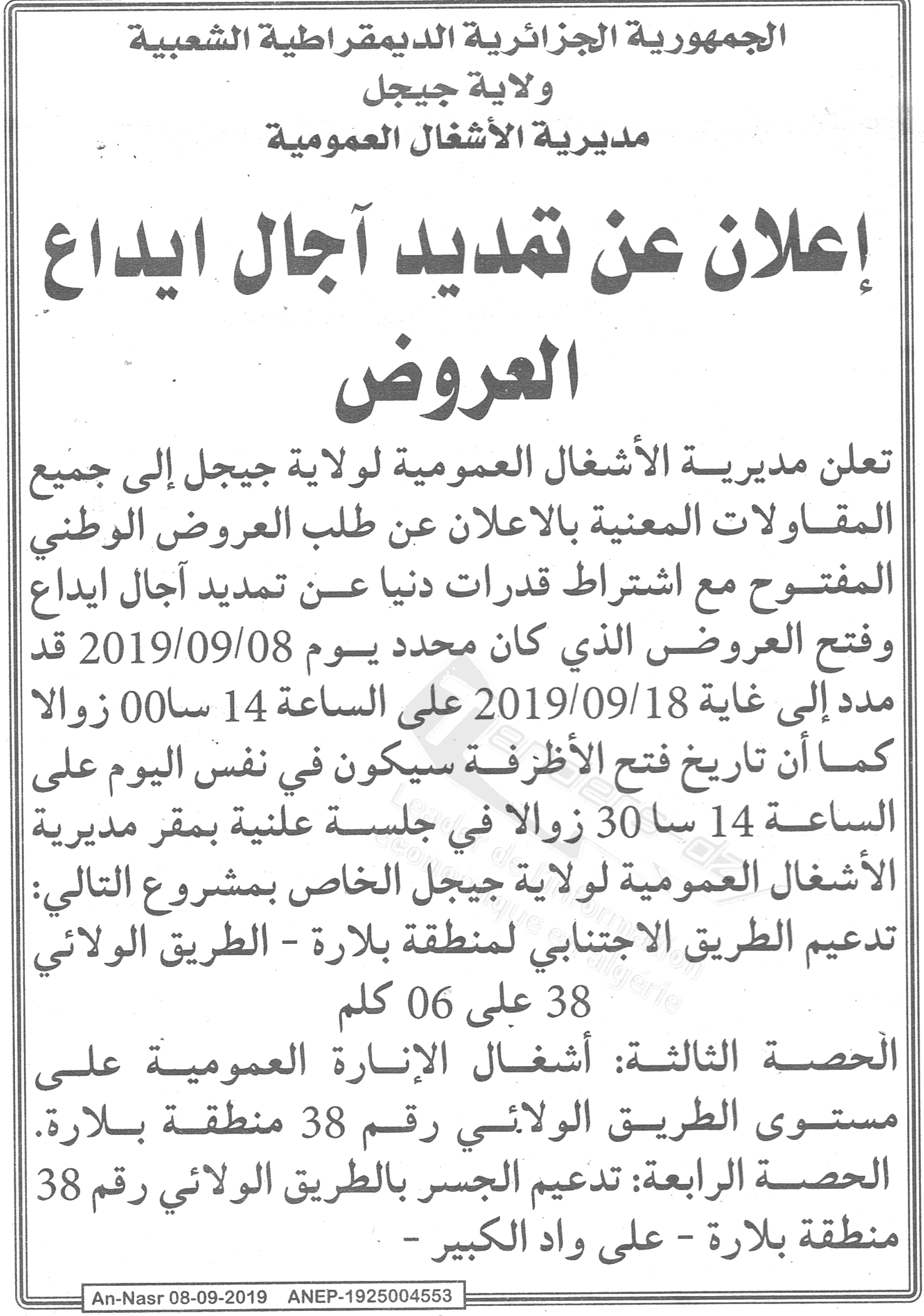 Nom Organisme : DTP WILAYA DE JIJEL (DIRECTION DES TRAVAUX PUBLICS)