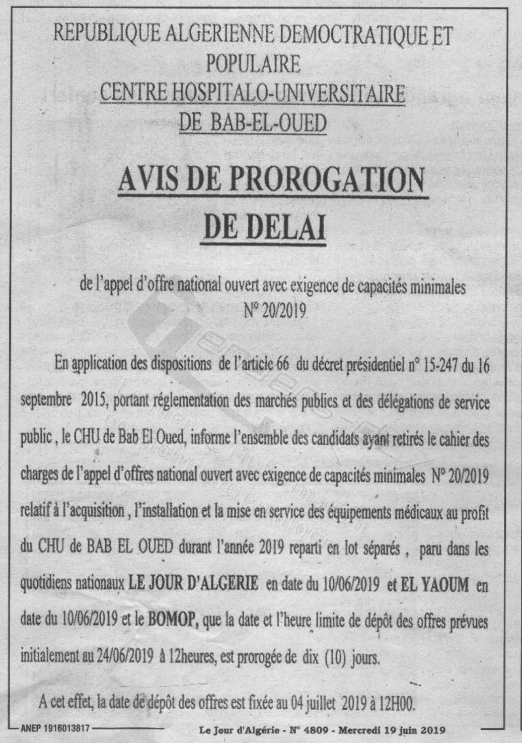 PROROGATION DE DELAI |