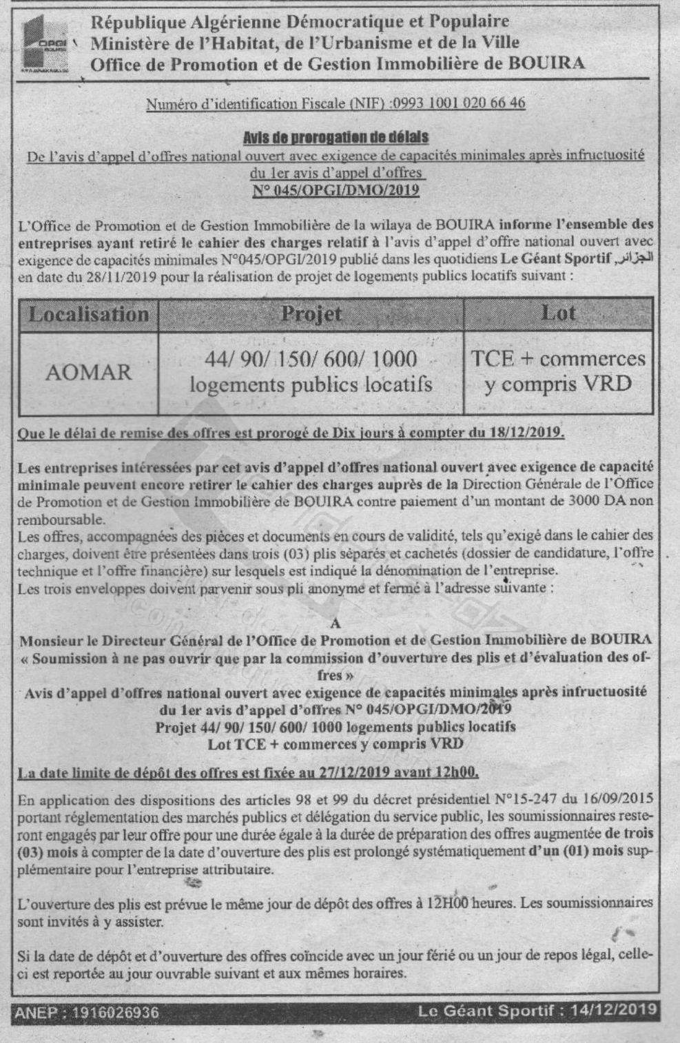 OPGI WILAYA DE BOUIRA (OFFICE DE PROMOTION ET DE GESTION IMMOBILIERE)