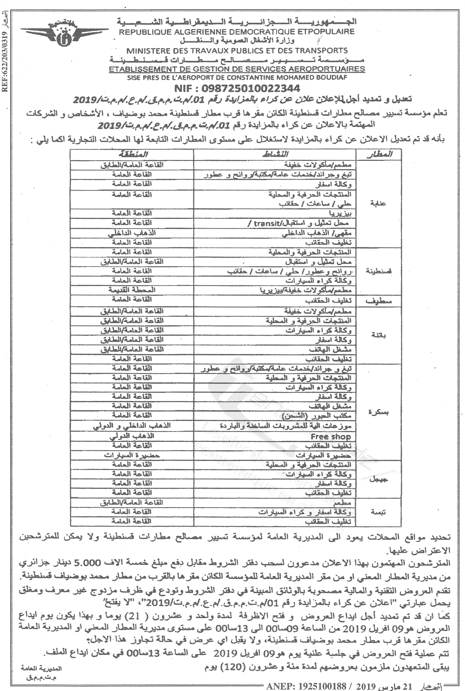 Objet : Location pour l'exploitation au niveau des aéroports selon les activités commerciales suivantes