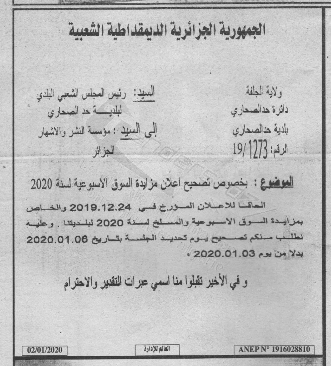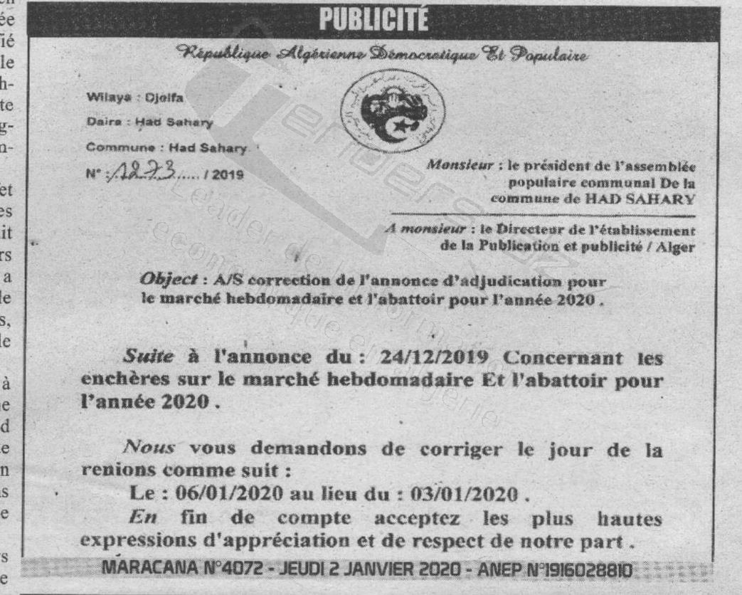 Nom Organisme : APC DE HAD SAHARY WILAYA DE DJELFA