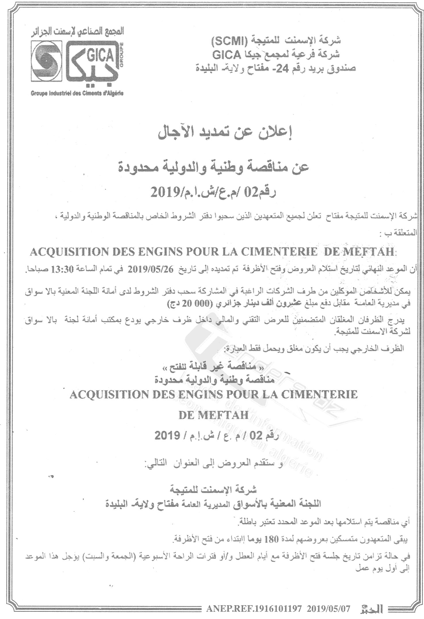 | Montant de Retrait du Cahier de Charges : 20 000.00 DA |