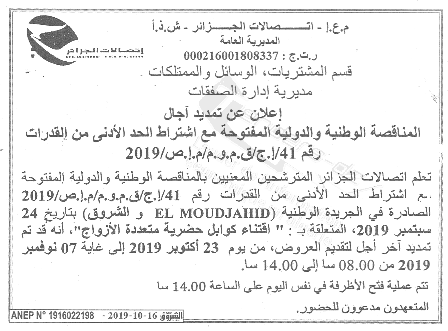 | Email : contact@algerietelecom.dz |