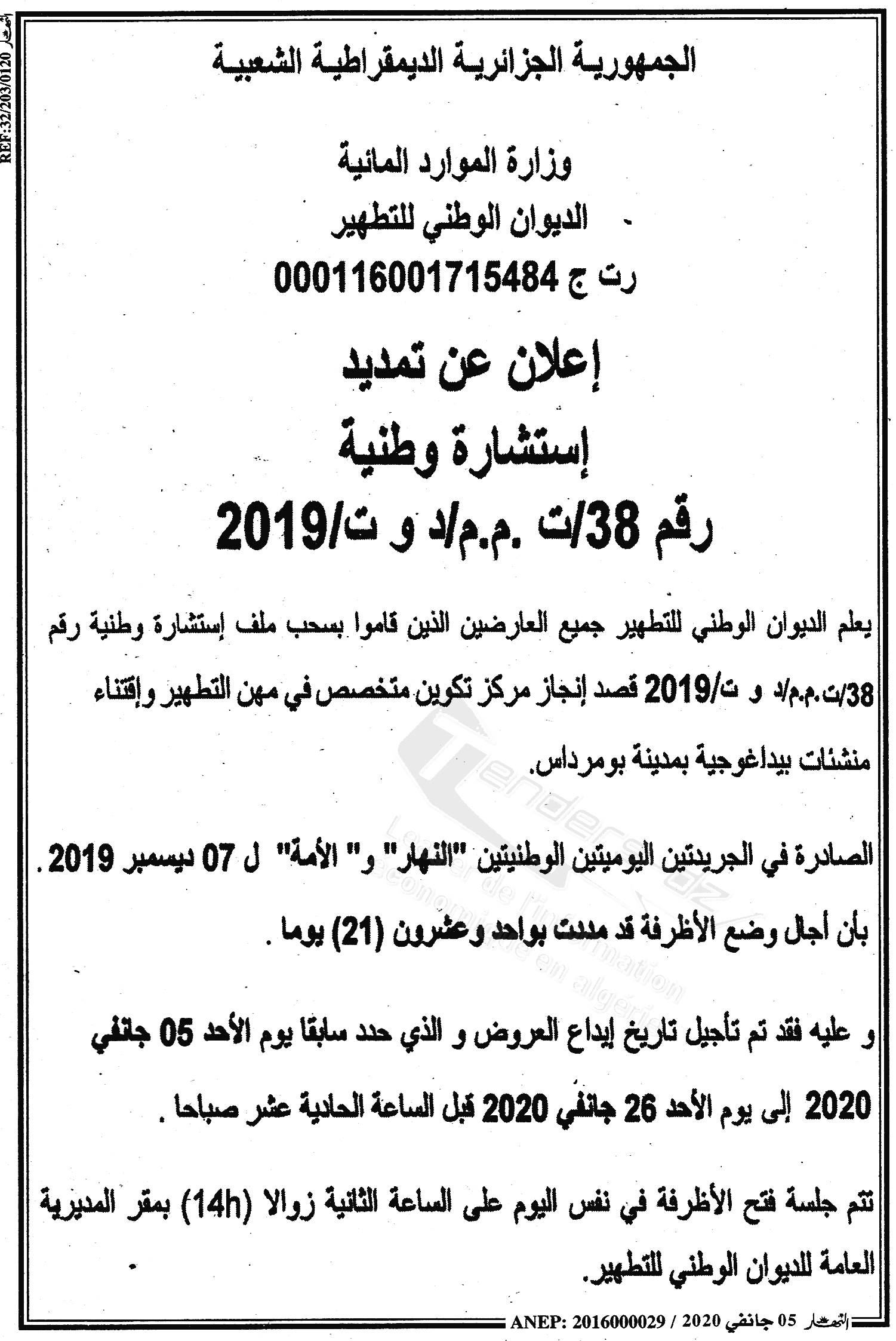 Objet : Réalisation d'un centre de formation socialisé aux matière de l’assainissement et l'acquisition pédagogique au niveau de la ville de Boumerdes