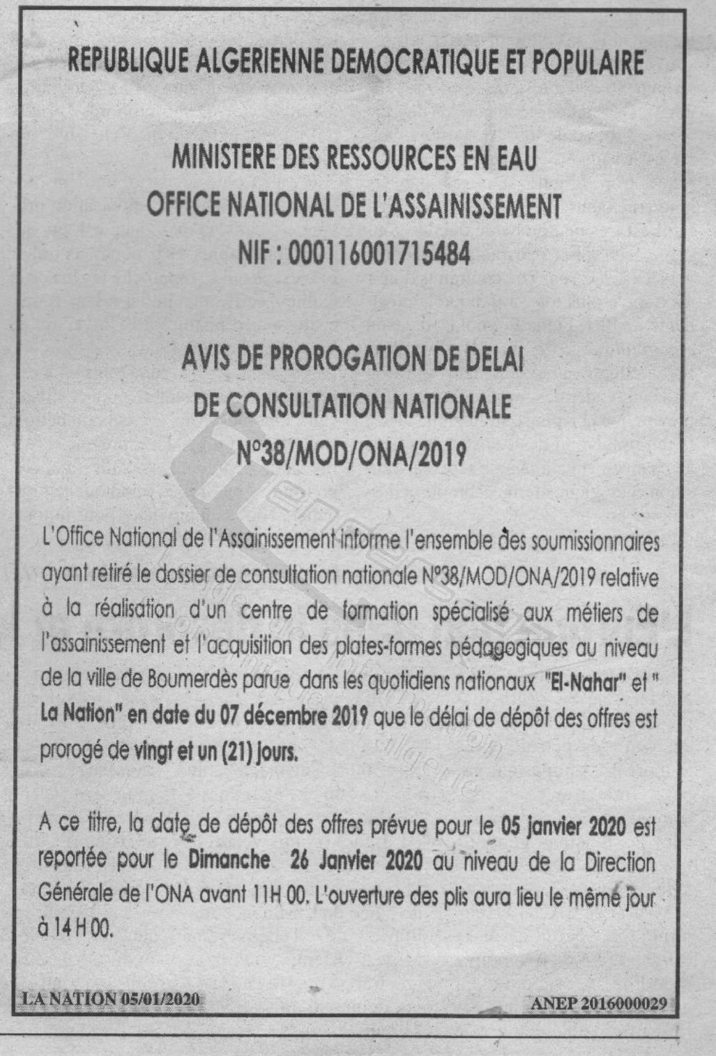 ONA (OFFICE NATIONAL DE L'ASSAINISSEMENT)