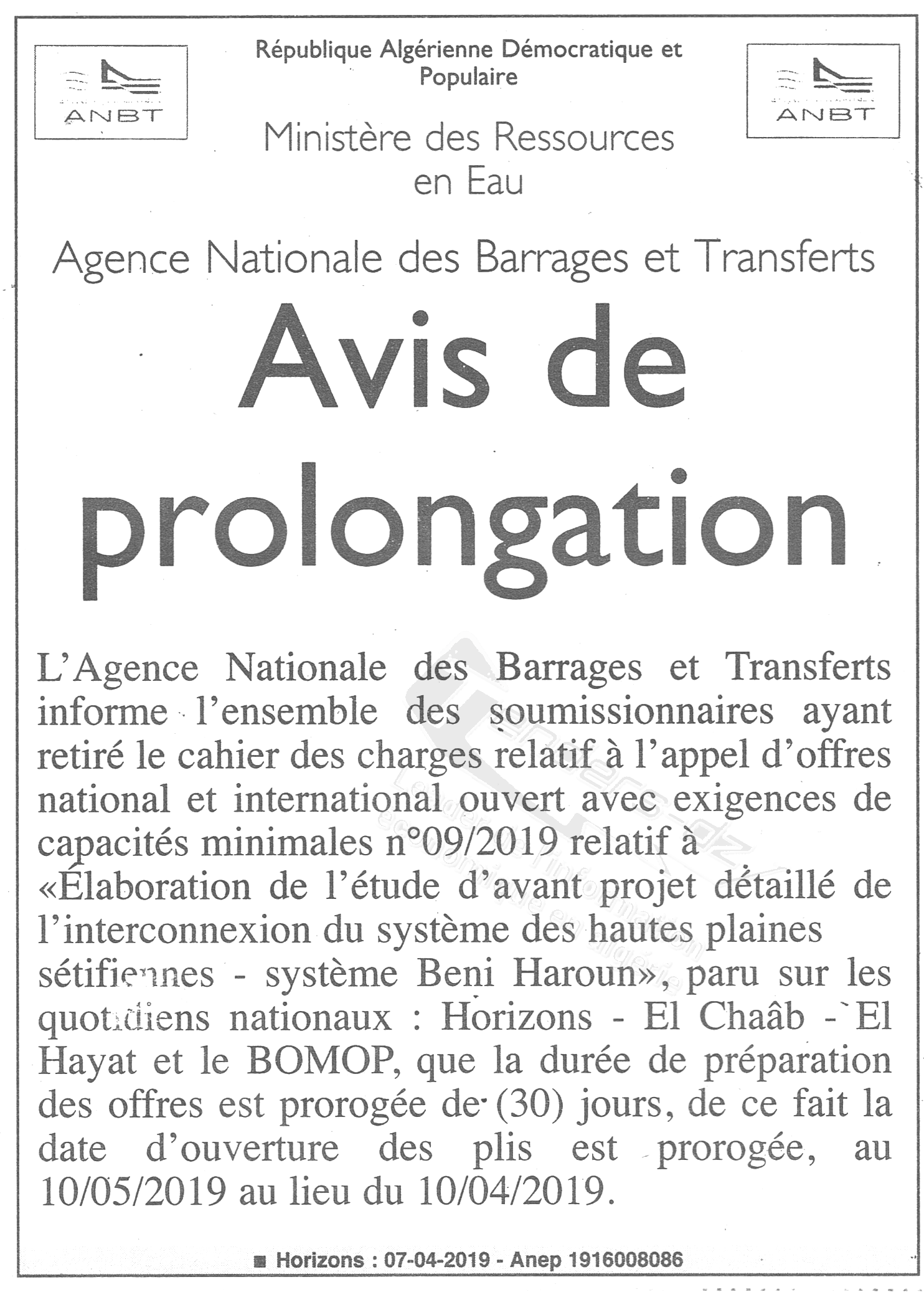 ANBT (AGENCE NATIONALE DES BARRAGES ET TRANSFERTS)